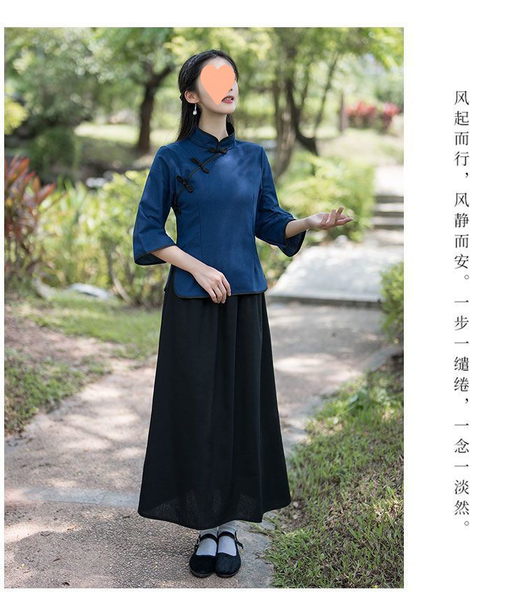 • 리넨 여성용 블루 (톱 스커트)