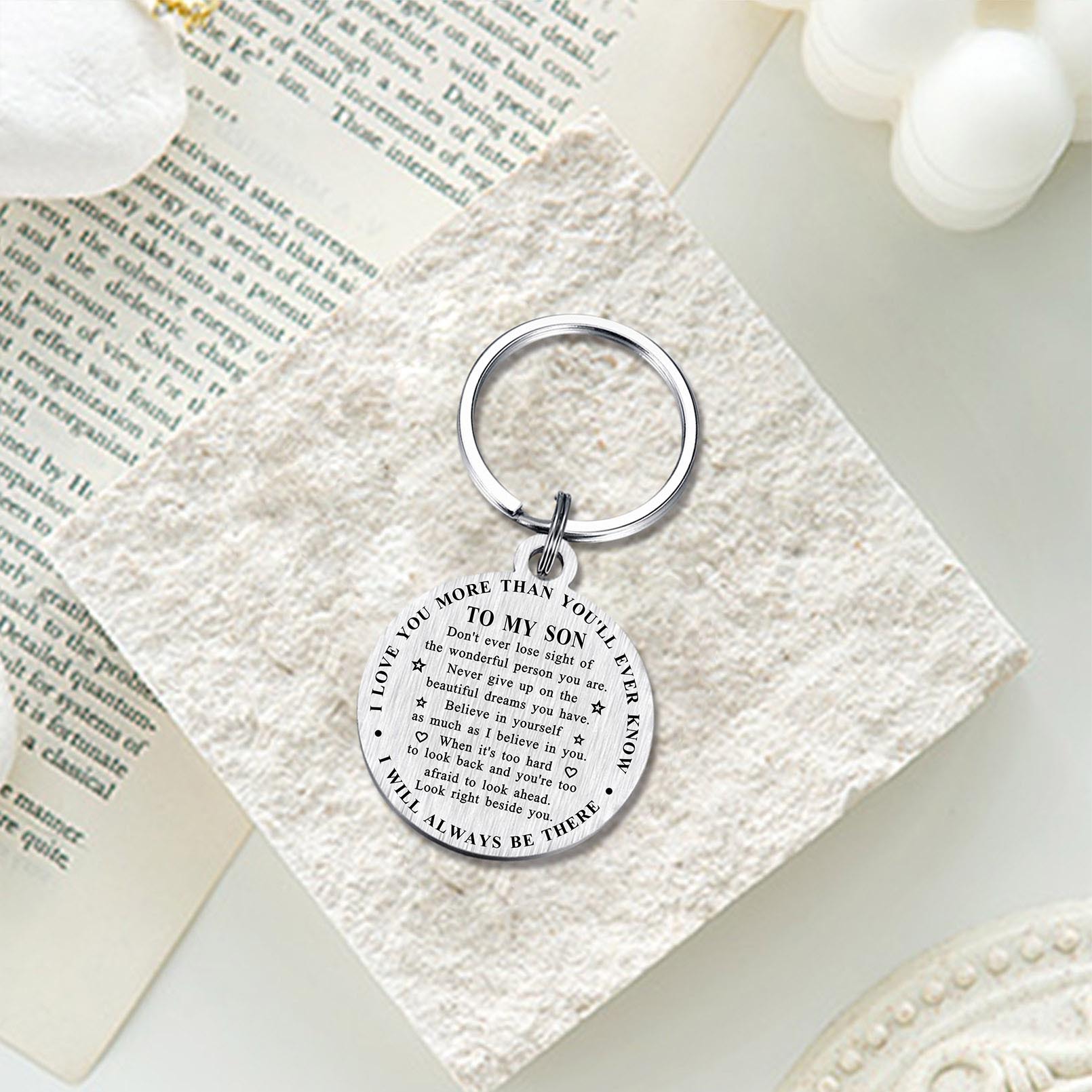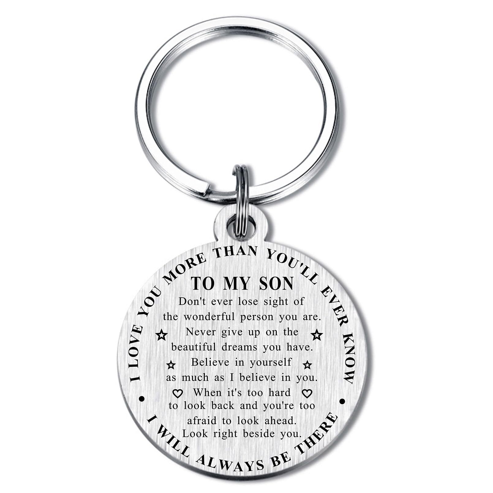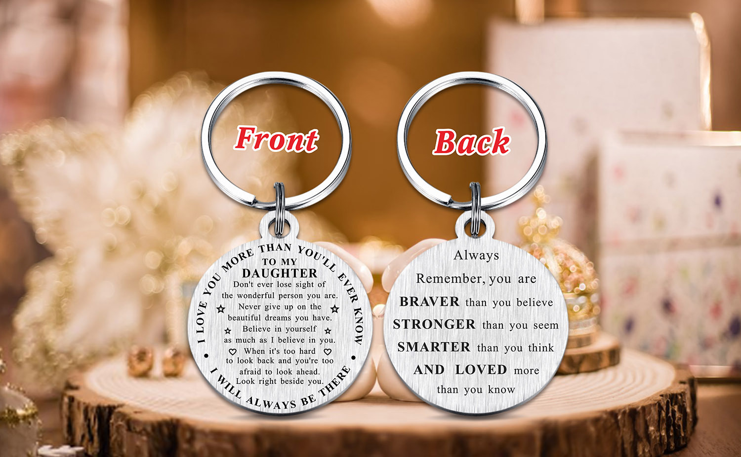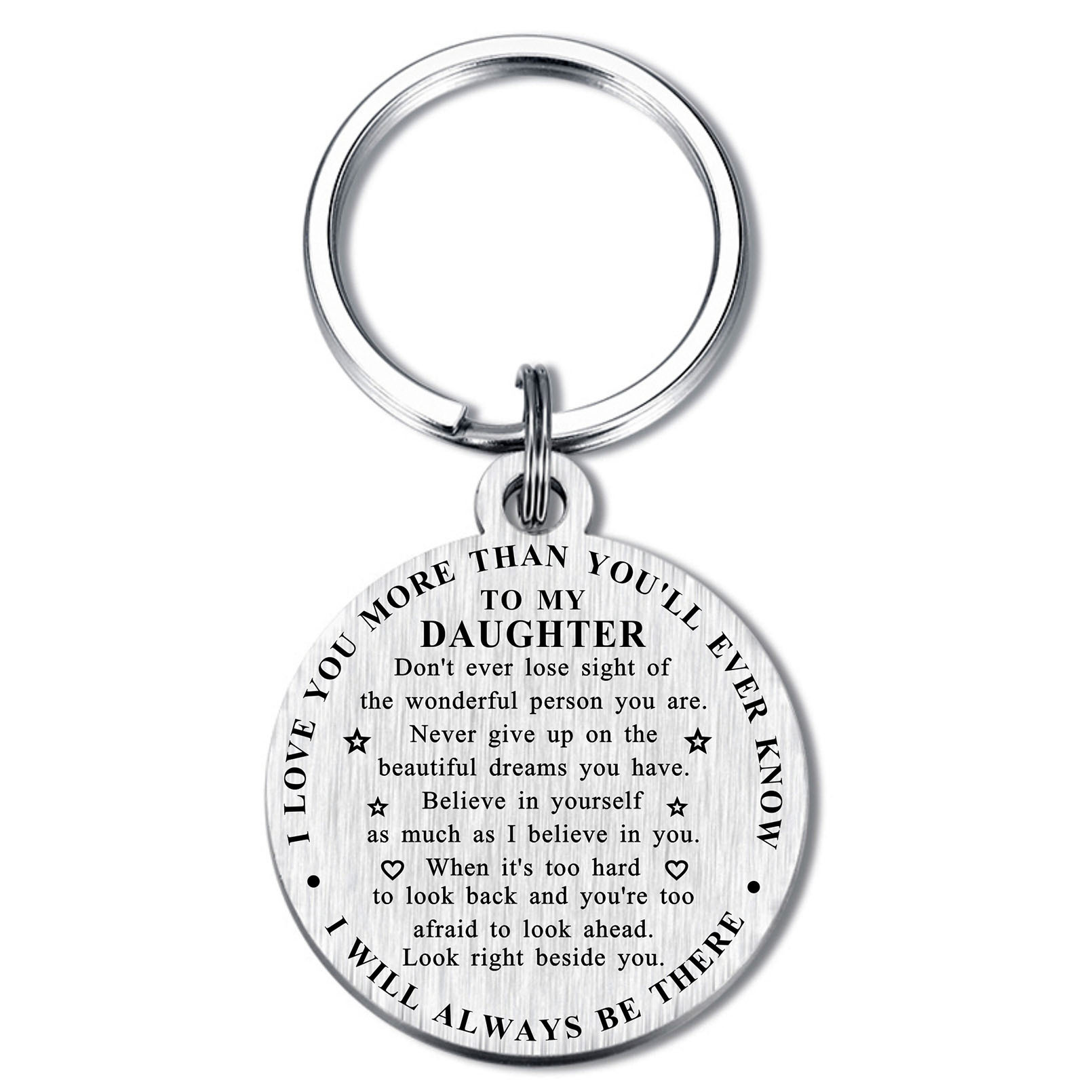 딸과 아들 졸업 선물을 위해 내 아들에게 내 딸 스테인레스 스틸 라운드 카드 키 체인스토어 가기