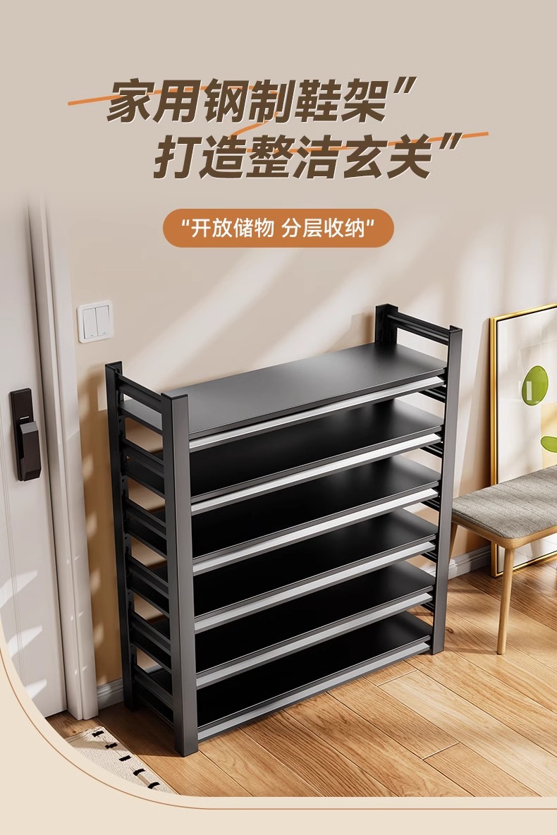 간단한 신발 랙 가정용 스틸 다층 신발 랙 오픈 도어 간단한 신발 캐비닛 배치 보관 랙