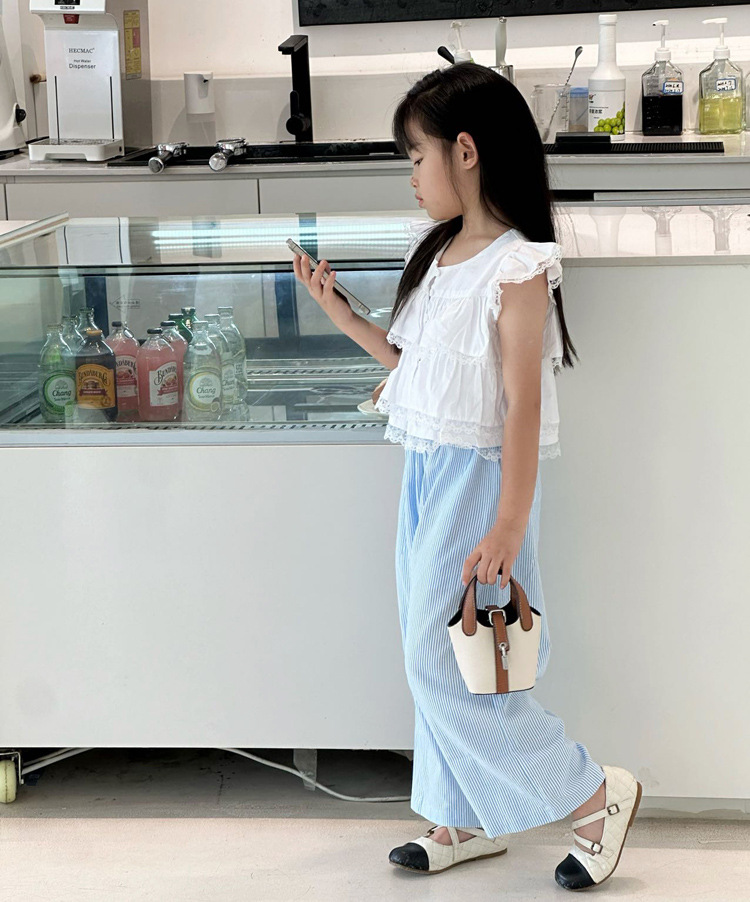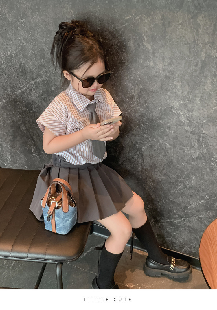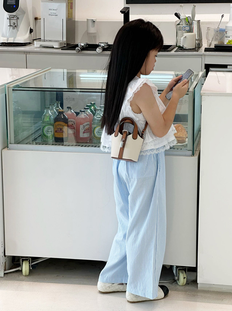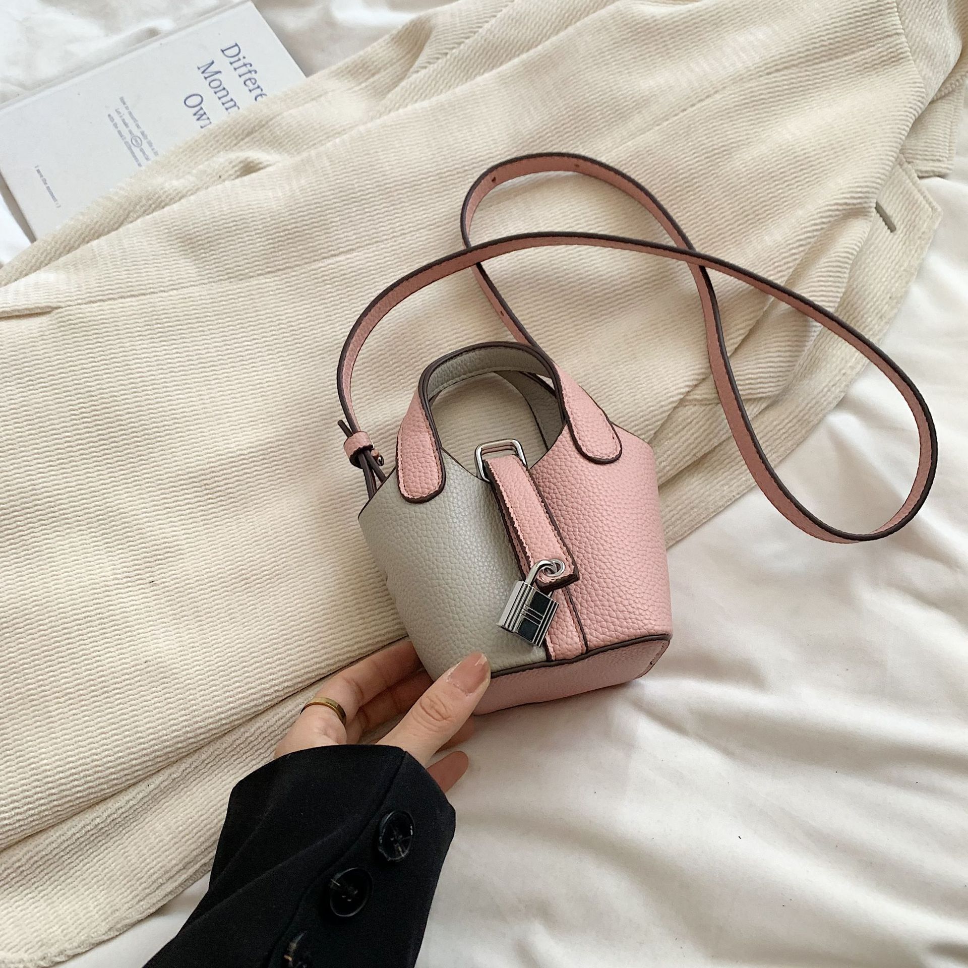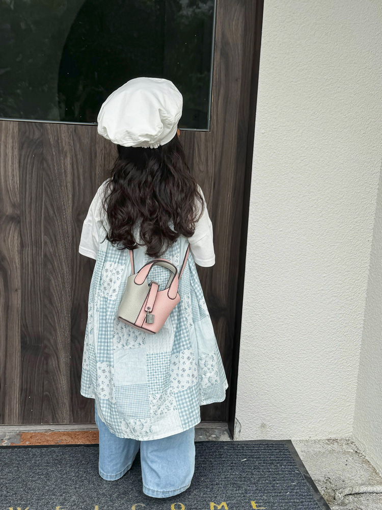 소녀 맞춤형 스티칭 미니 버킷 백 2024 여름 새로운 유행 간단한 부모-어린이 휴대용 크로스 바디 액세서리 가방