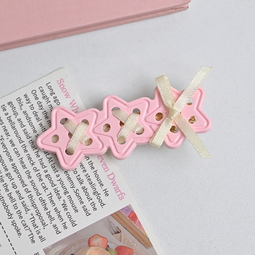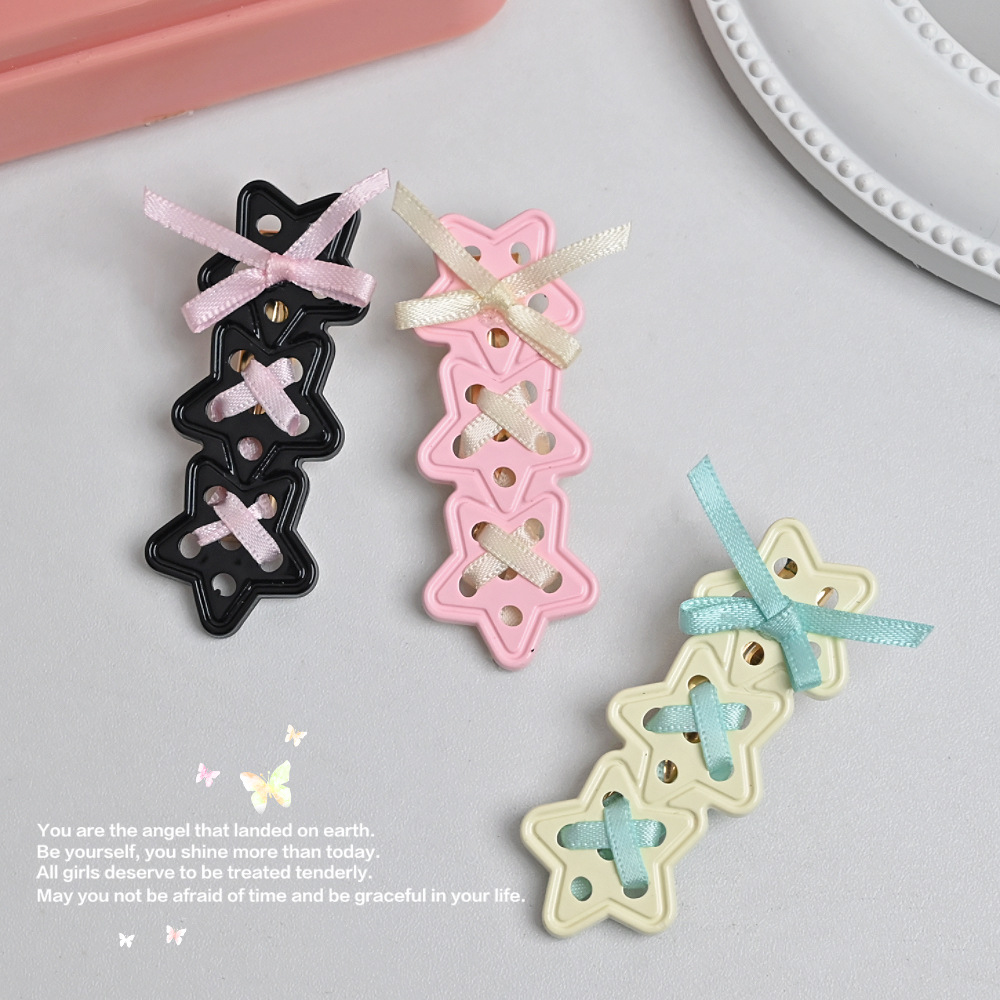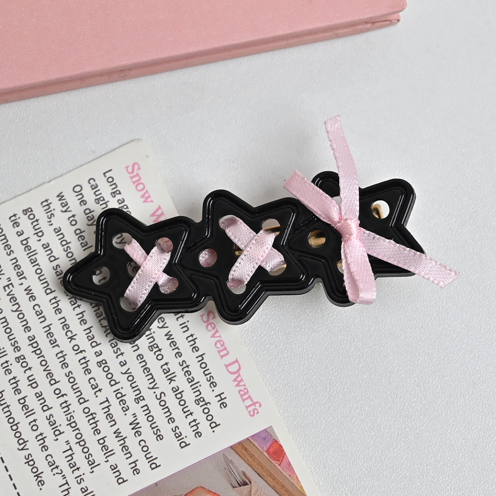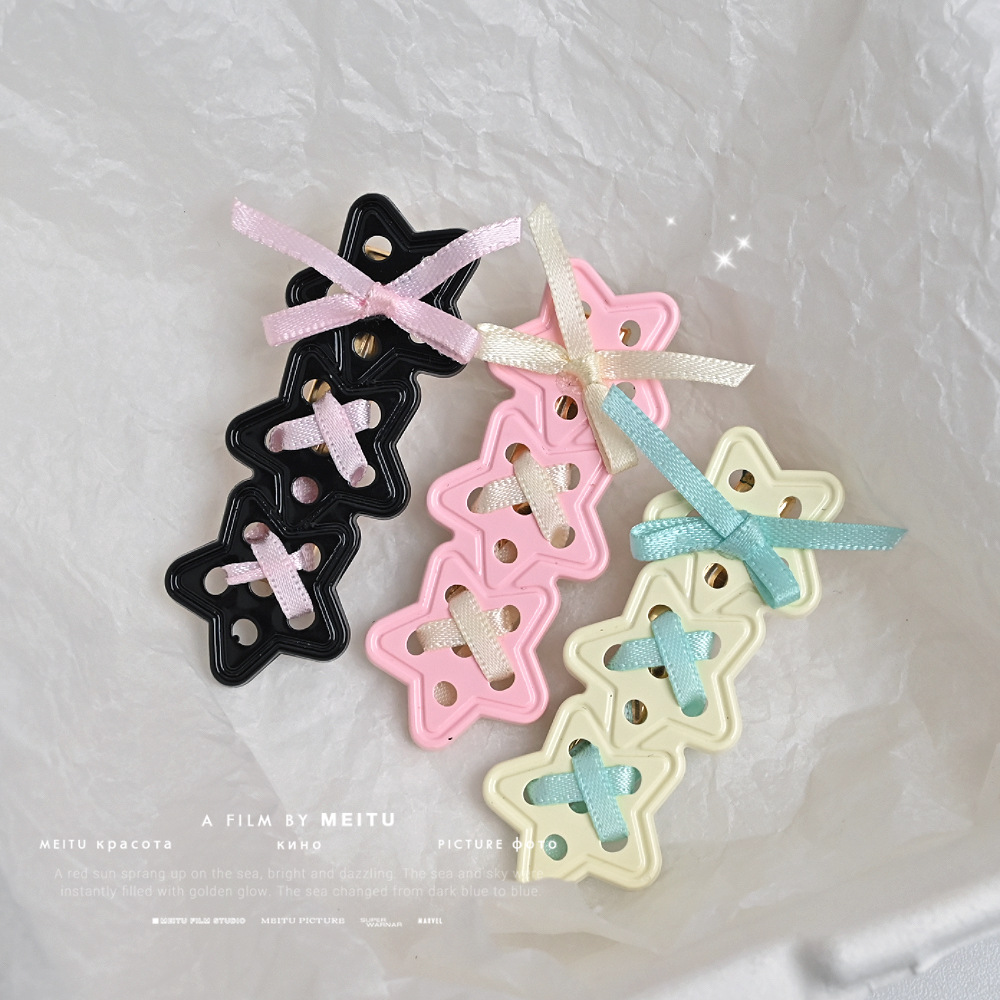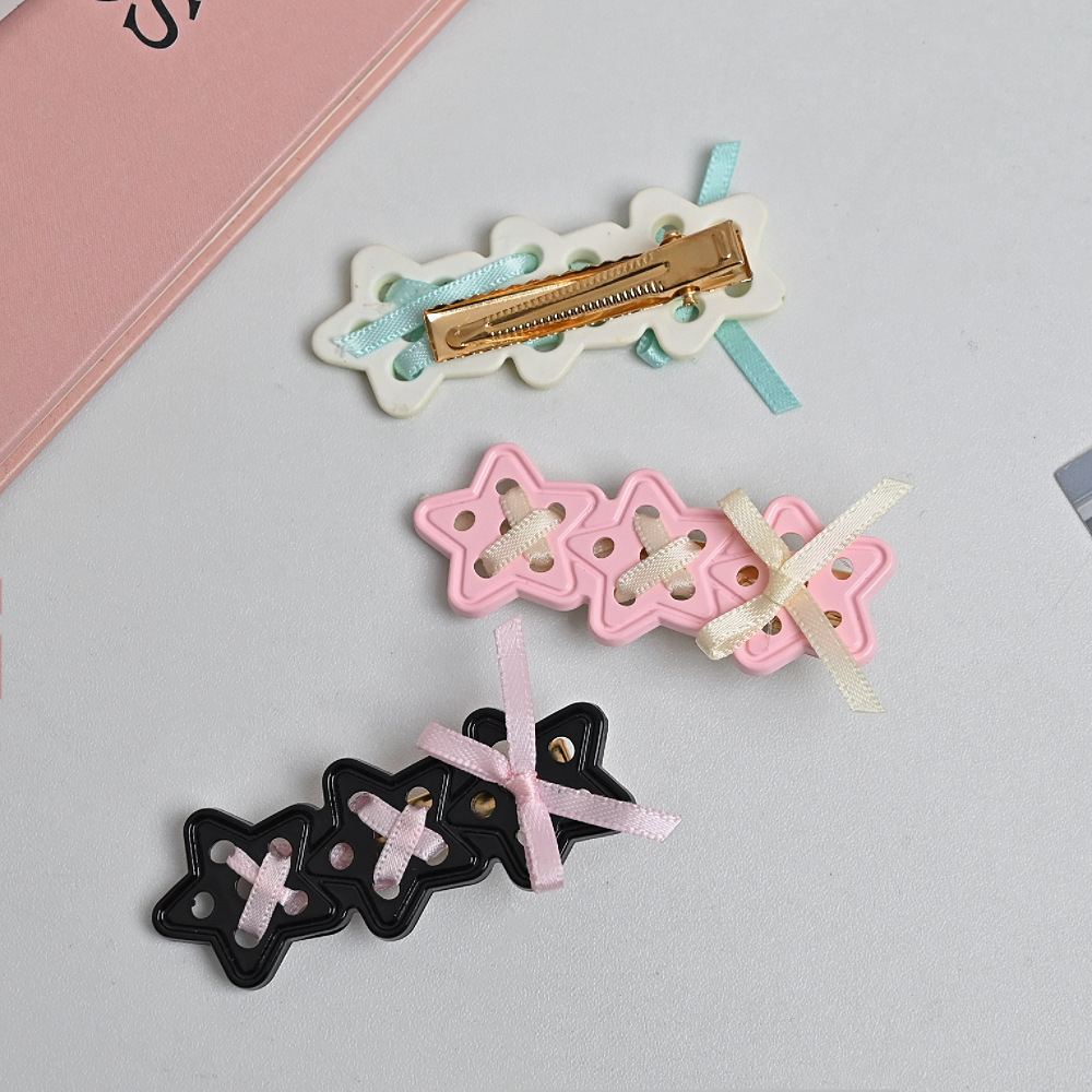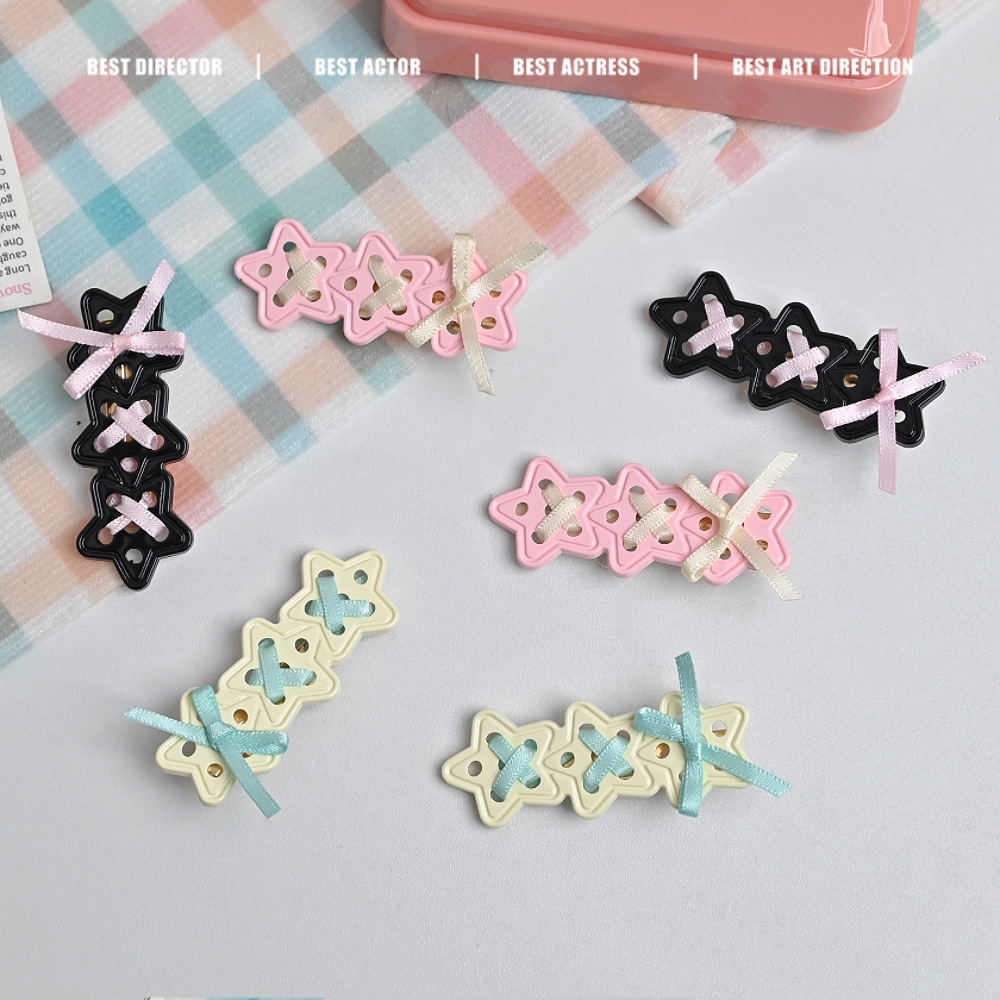 달콤한 쿨 스파이스 소녀 스타일 스타 리본 활 덕빌 클립 Ins 달콤한 소녀 하트 뱅 사이드 클립 헤드웨어 여성