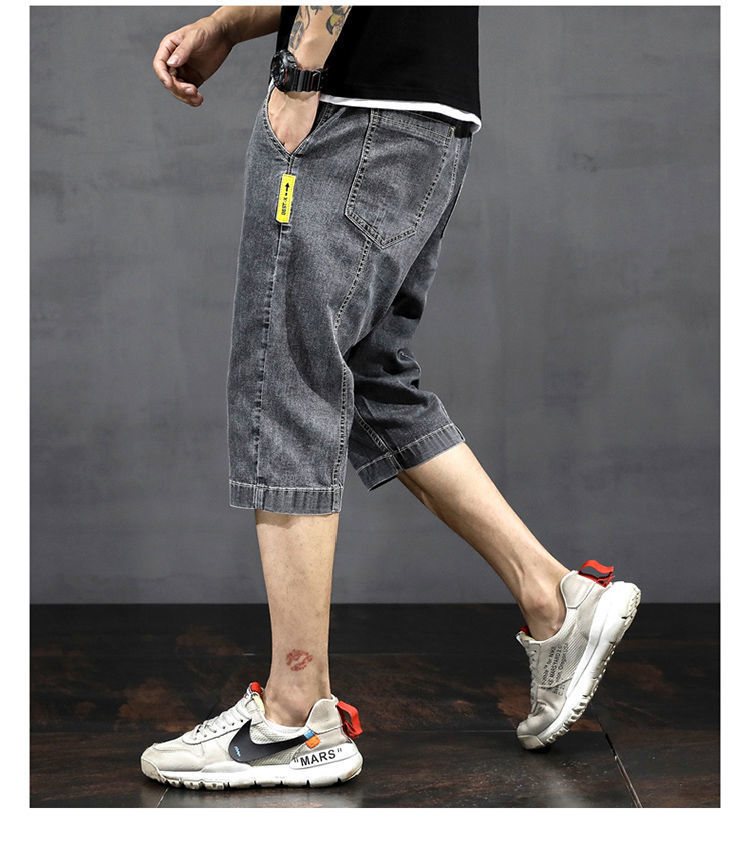 여름 얇은 데님 반바지 남성용 카프리 바지 남성용 느슨한 스트레이트 스트레치 바지 캐주얼 할란 트렌디 바지스토어 가기
