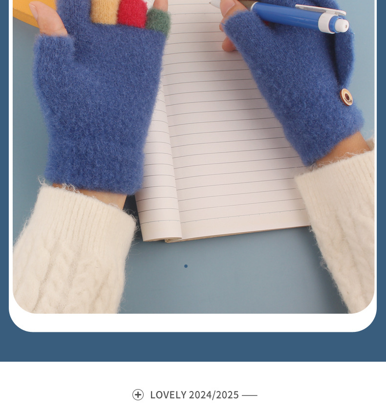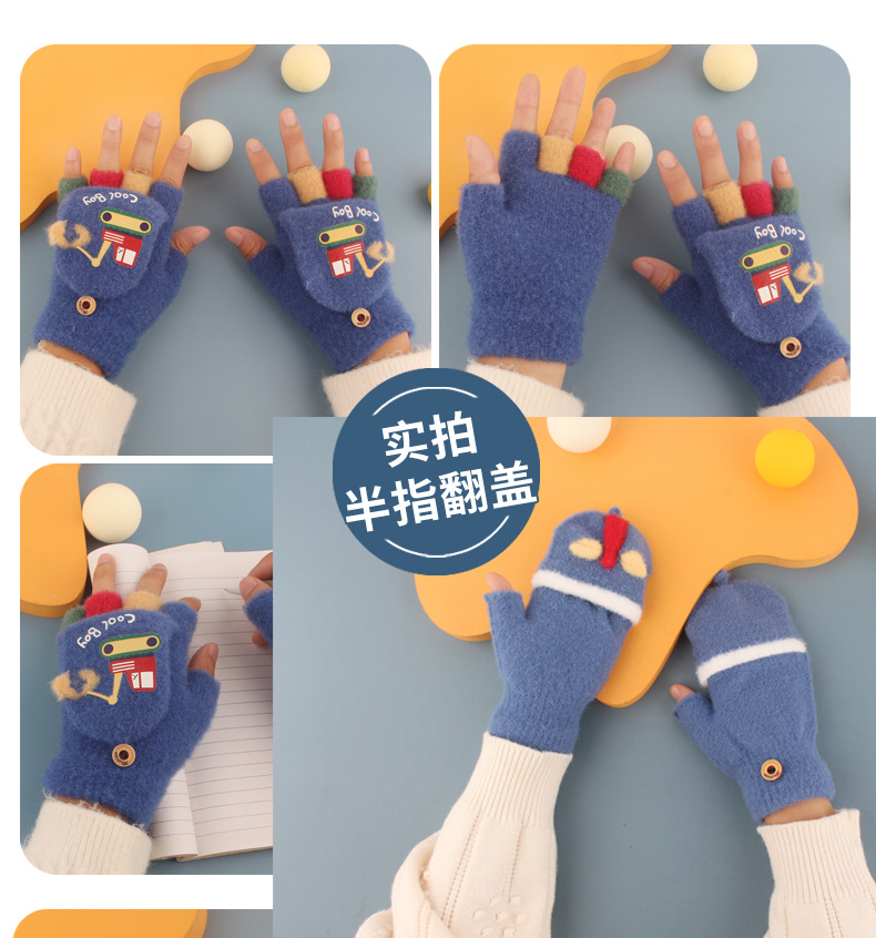 어린이 장갑 가을과 겨울 아기 만화 귀여운 반 손가락 플립 니트 울 차가운 따뜻한 이중 목적 초등학생