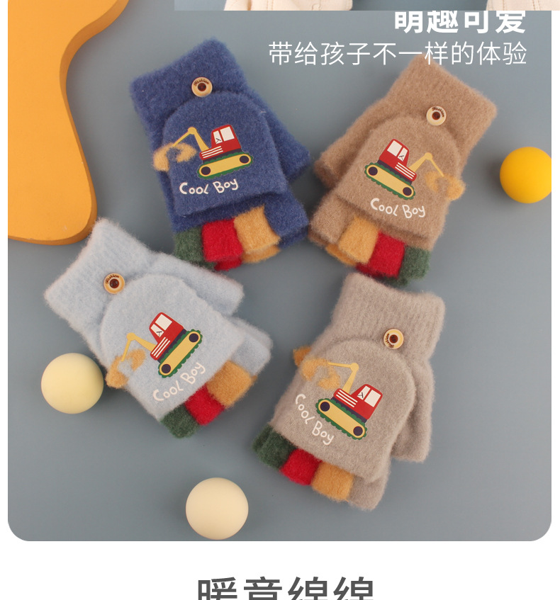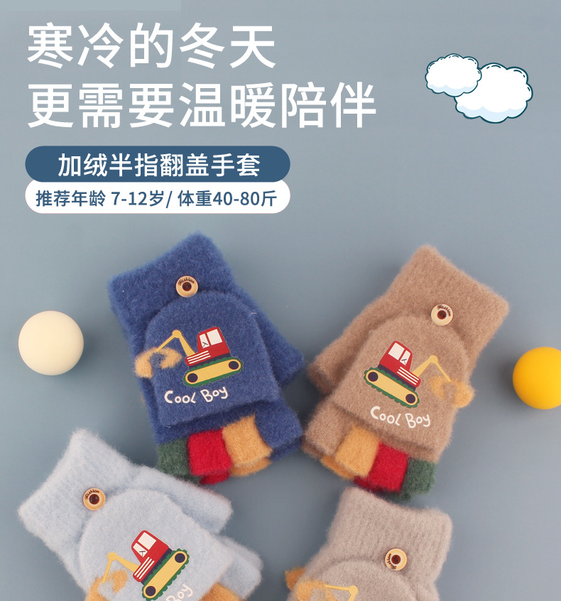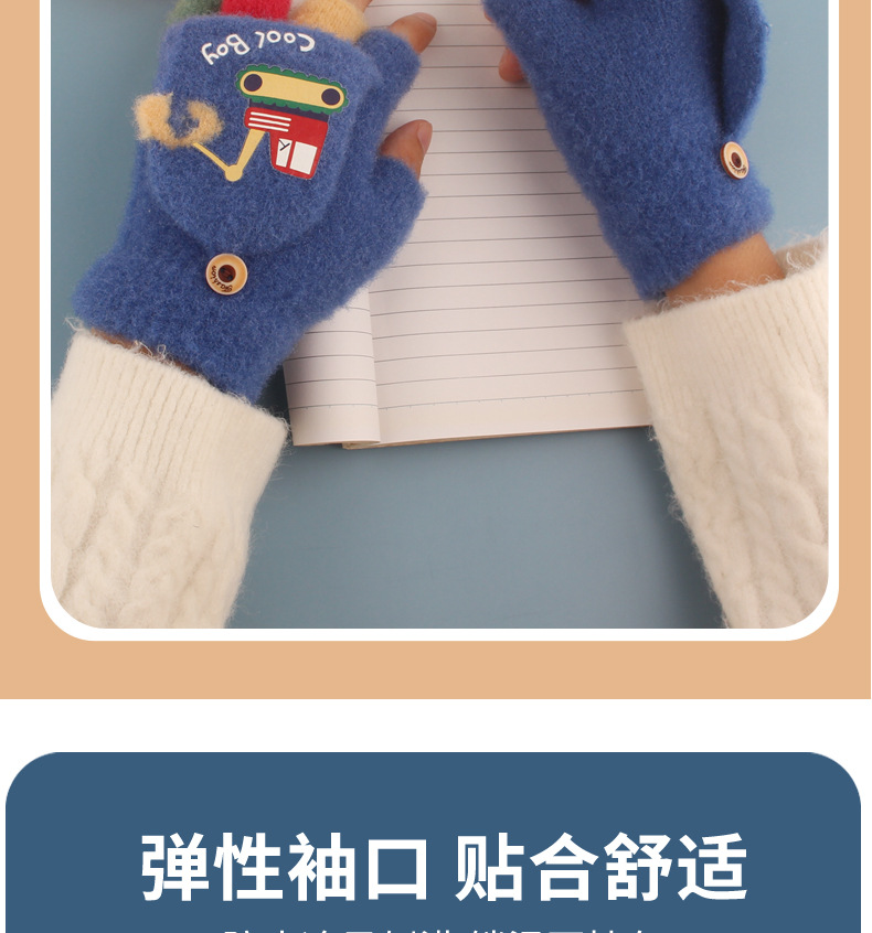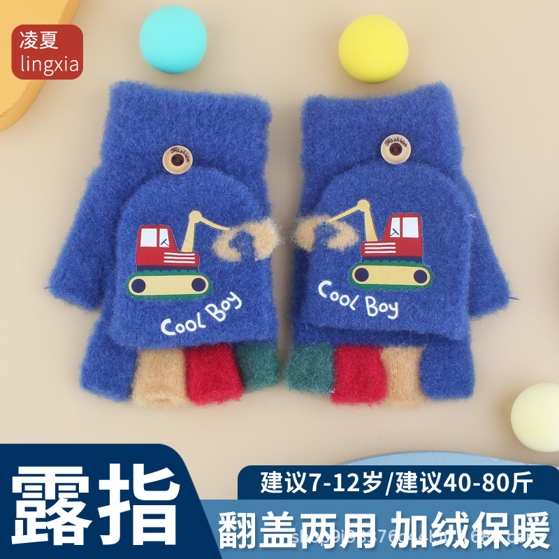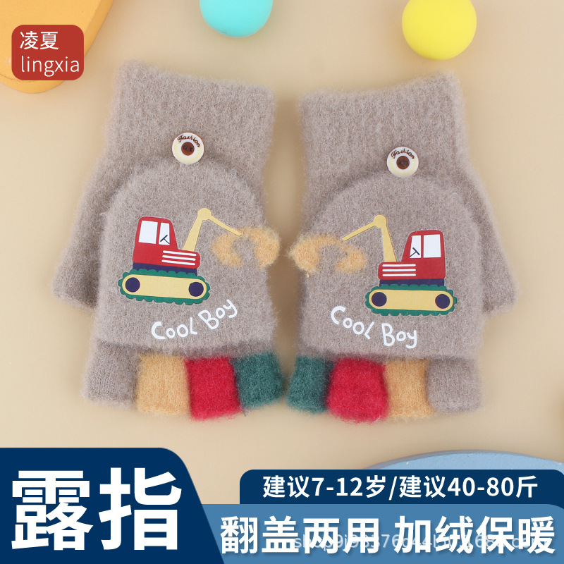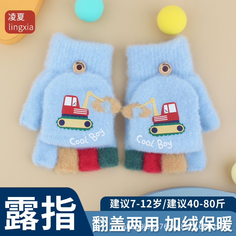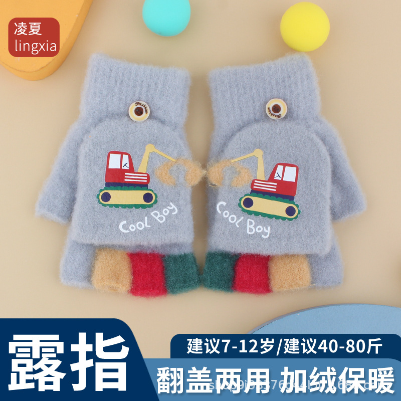 어린이 장갑 가을과 겨울 아기 만화 귀여운 반 손가락 플립 니트 울 차가운 따뜻한 이중 목적 초등학생스토어 가기