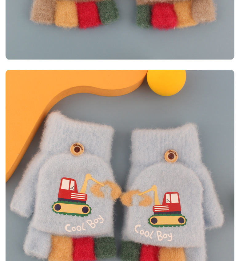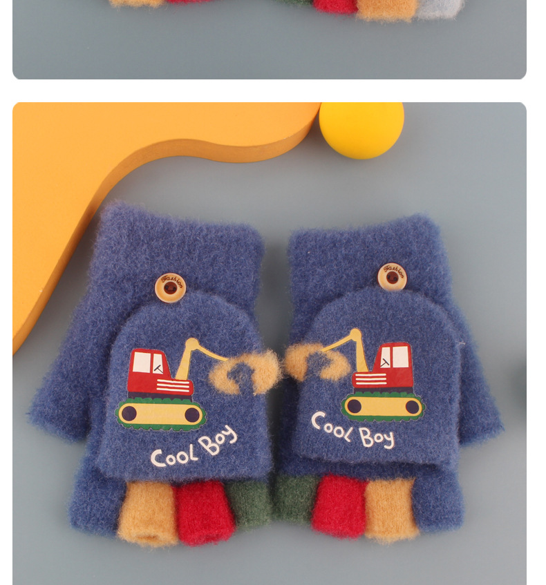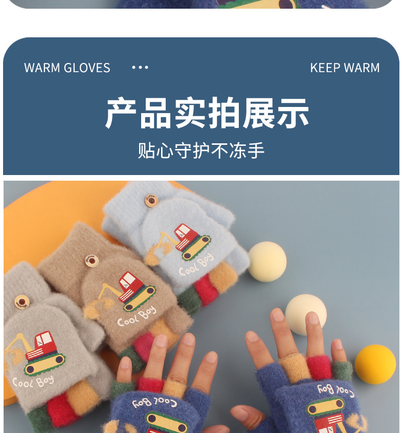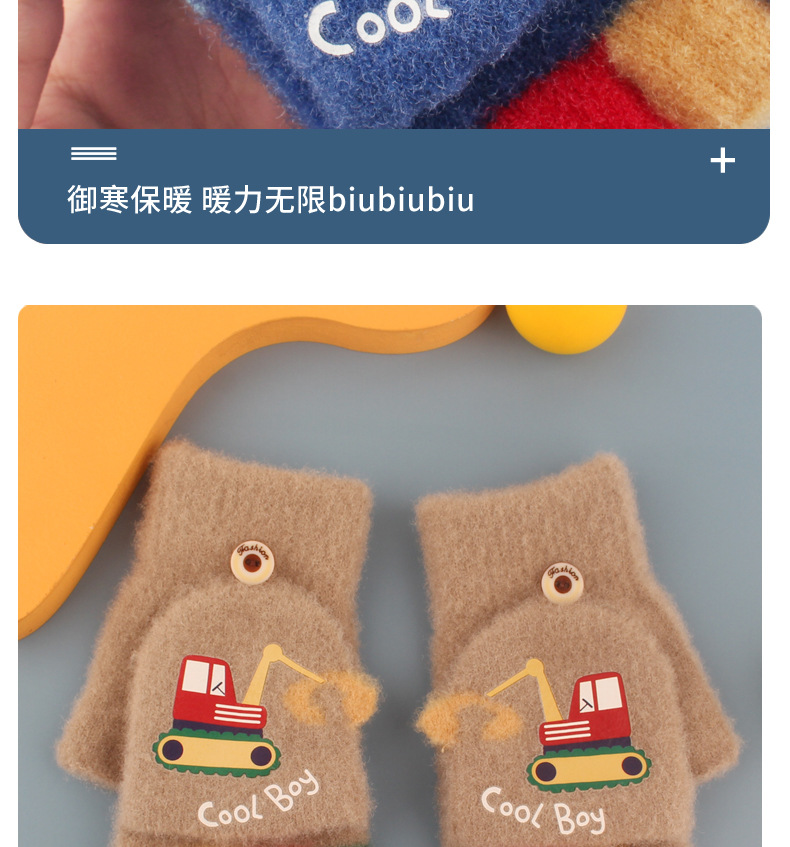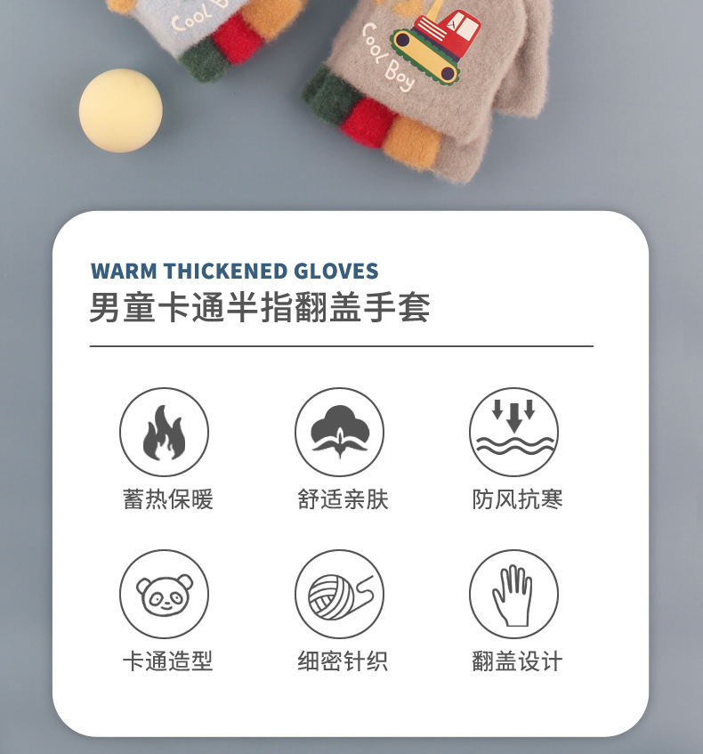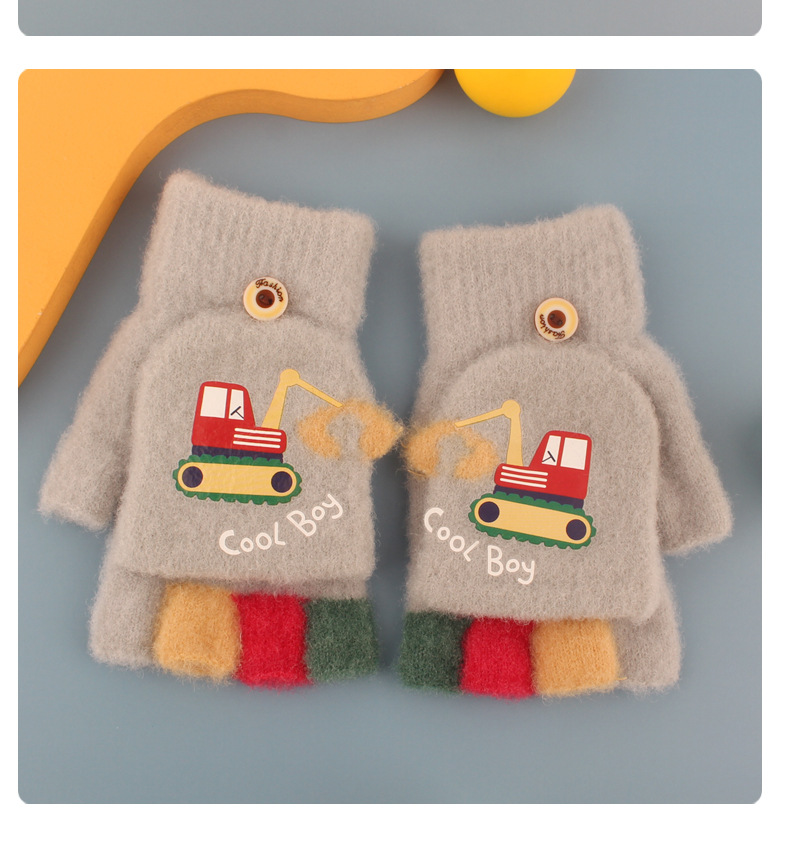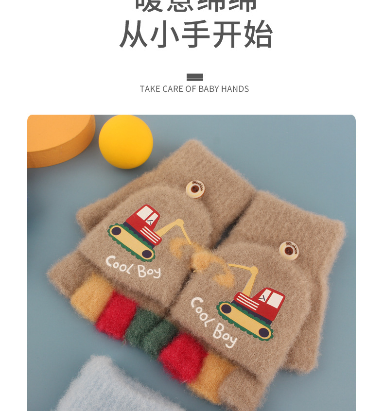 어린이 장갑 가을과 겨울 아기 만화 귀여운 반 손가락 플립 니트 울 차가운 따뜻한 이중 목적 초등학생스토어 가기