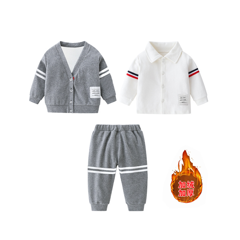 아기의 가을과 겨울 옷 소년의 잘 생긴 영국 원피스 세트 바지 아기 아이들의 두꺼운 3 조각 세트