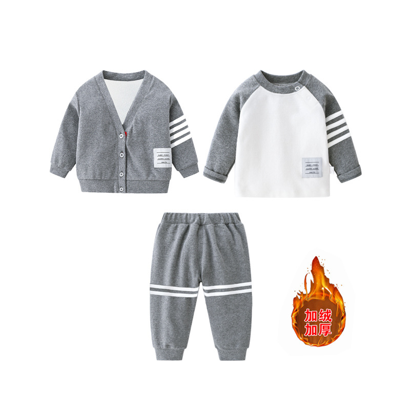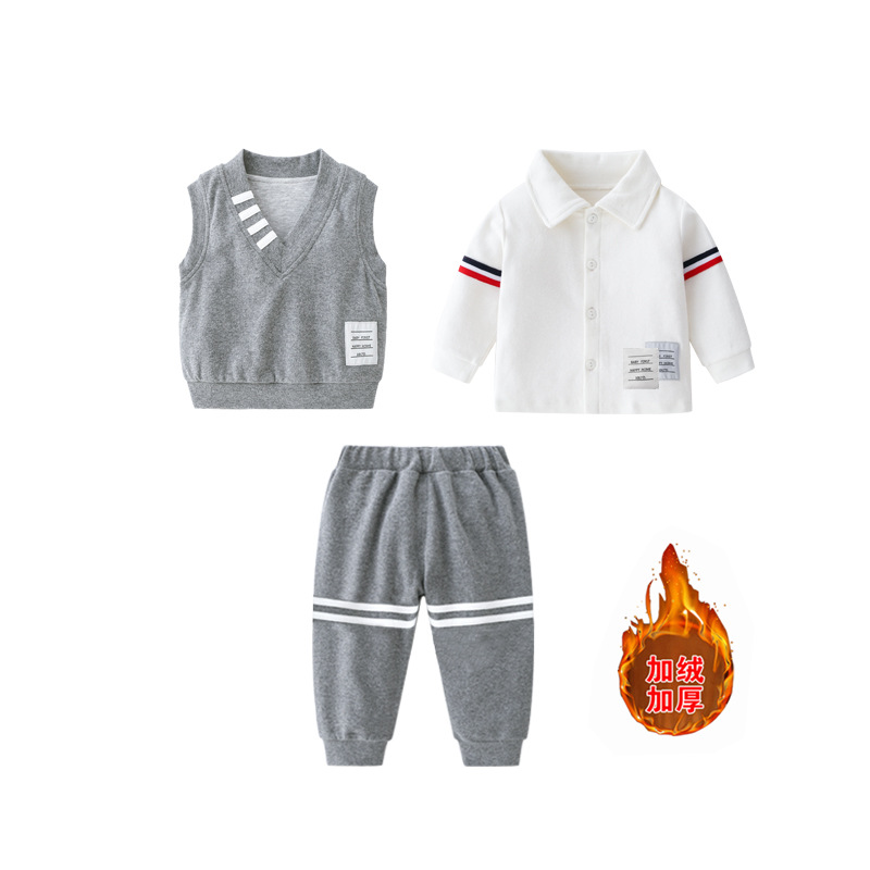 아기의 가을과 겨울 옷 소년의 잘 생긴 영국 원피스 세트 바지 아기 아이들의 두꺼운 3 조각 세트스토어 가기