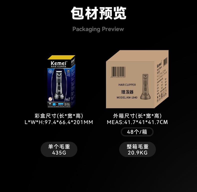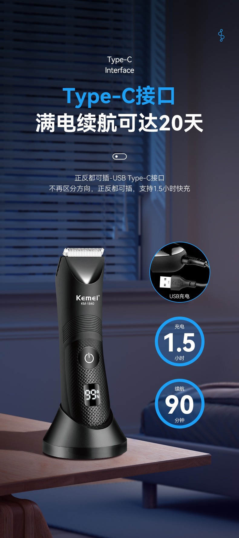 Kemei KEMEI-1840 새로운 바디 방수 전기 클리퍼 헤어 클리퍼 다기능 개인 헤어 클리퍼 면도 헤어 클리퍼