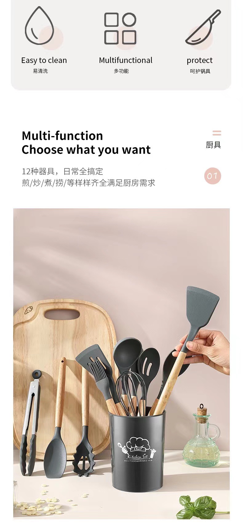 실리콘 주방용품 12종 세트 주방 가정용 요리 주걱 및 스푼 논스틱 특수 주방용품 세트 실리콘 주걱 및 스푼