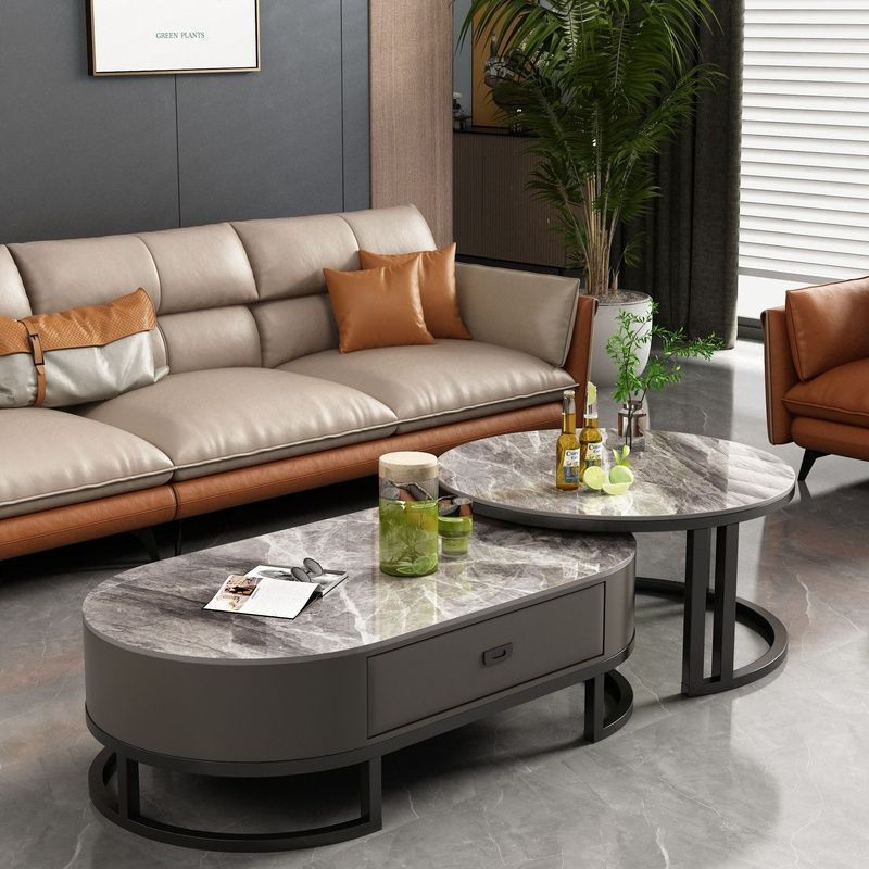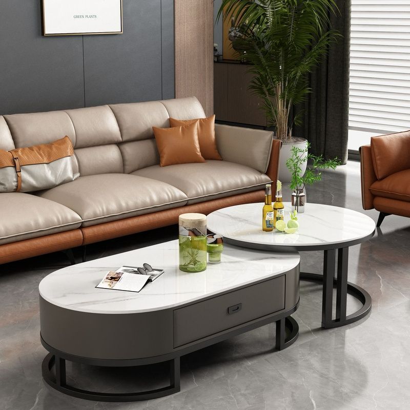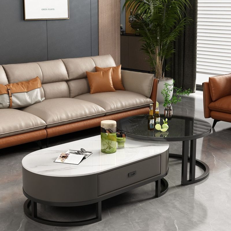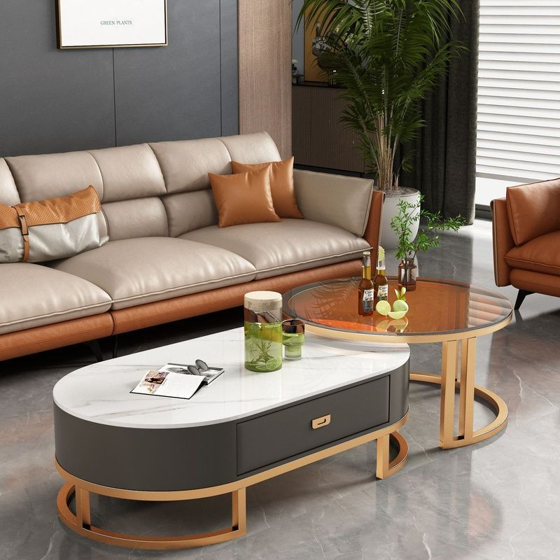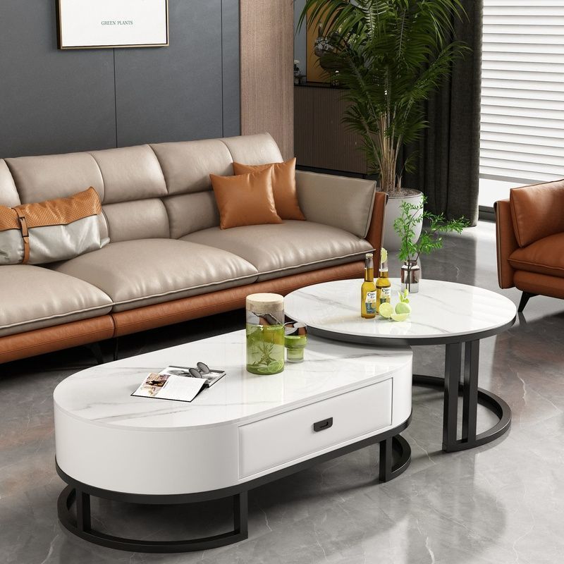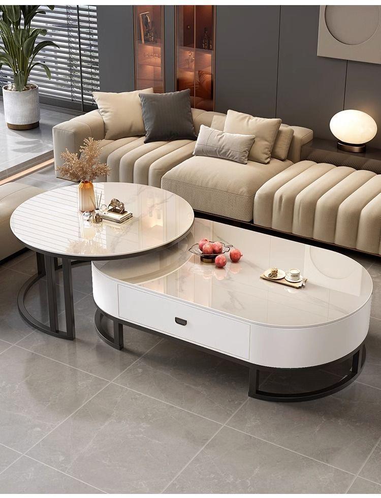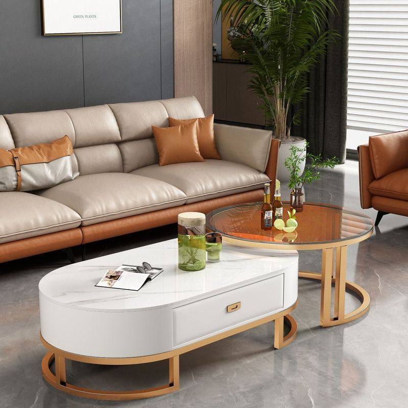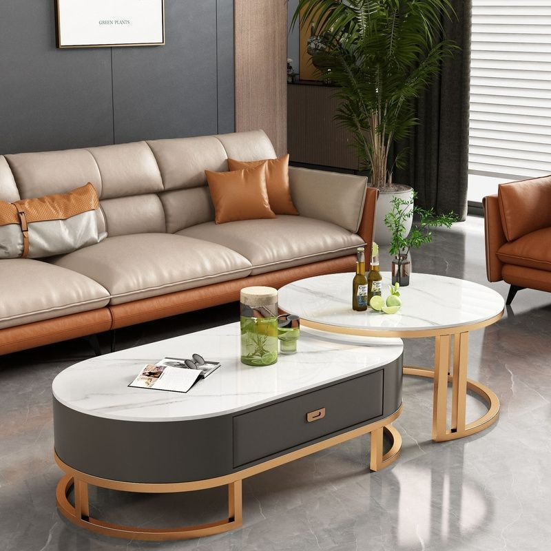 록 보드 커피 테이블 Ins 스타일 홈 거실 빛 럭셔리 현대 간단한 작은 아파트 타원형 2025 새로운 차 테이블