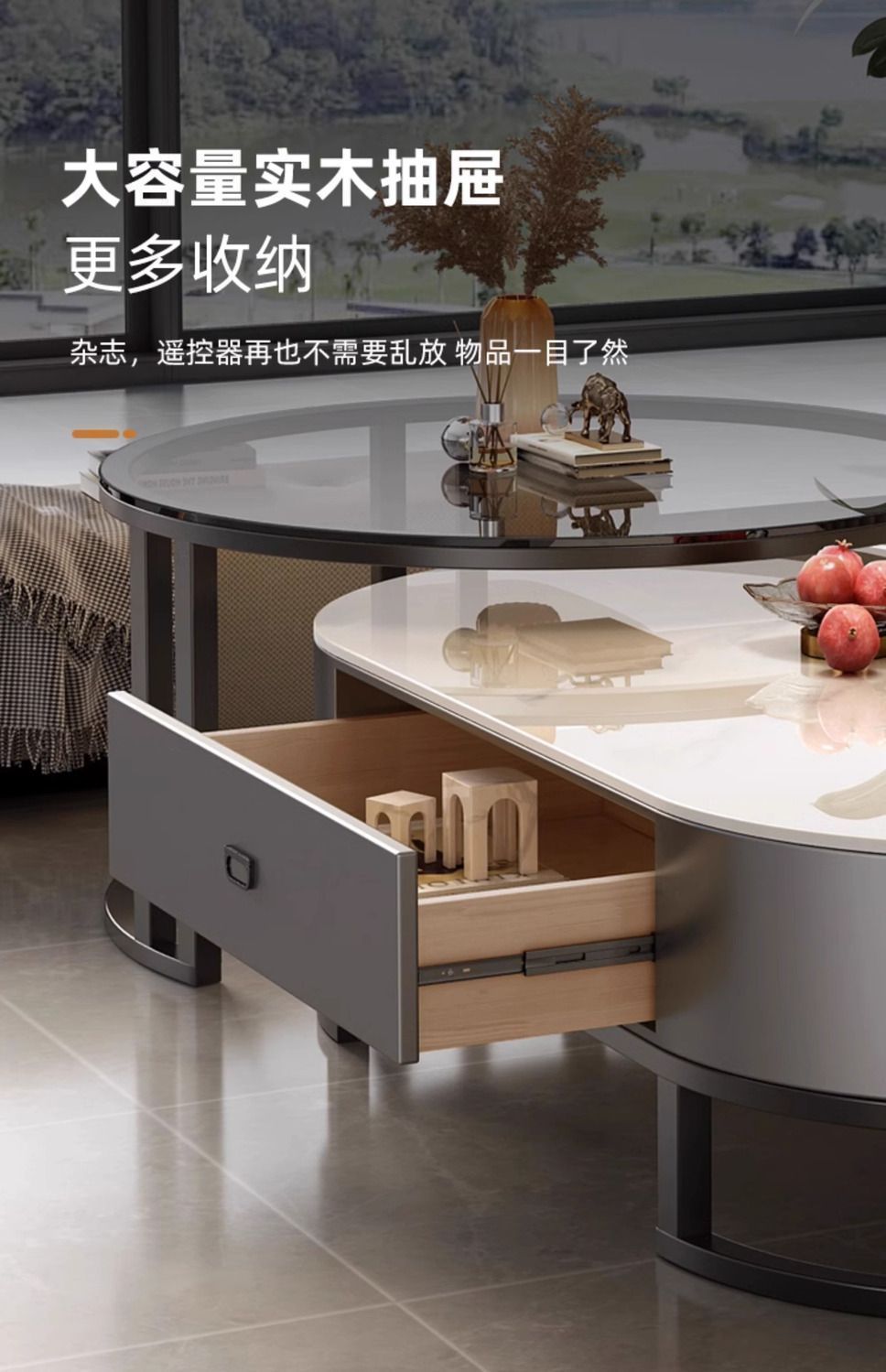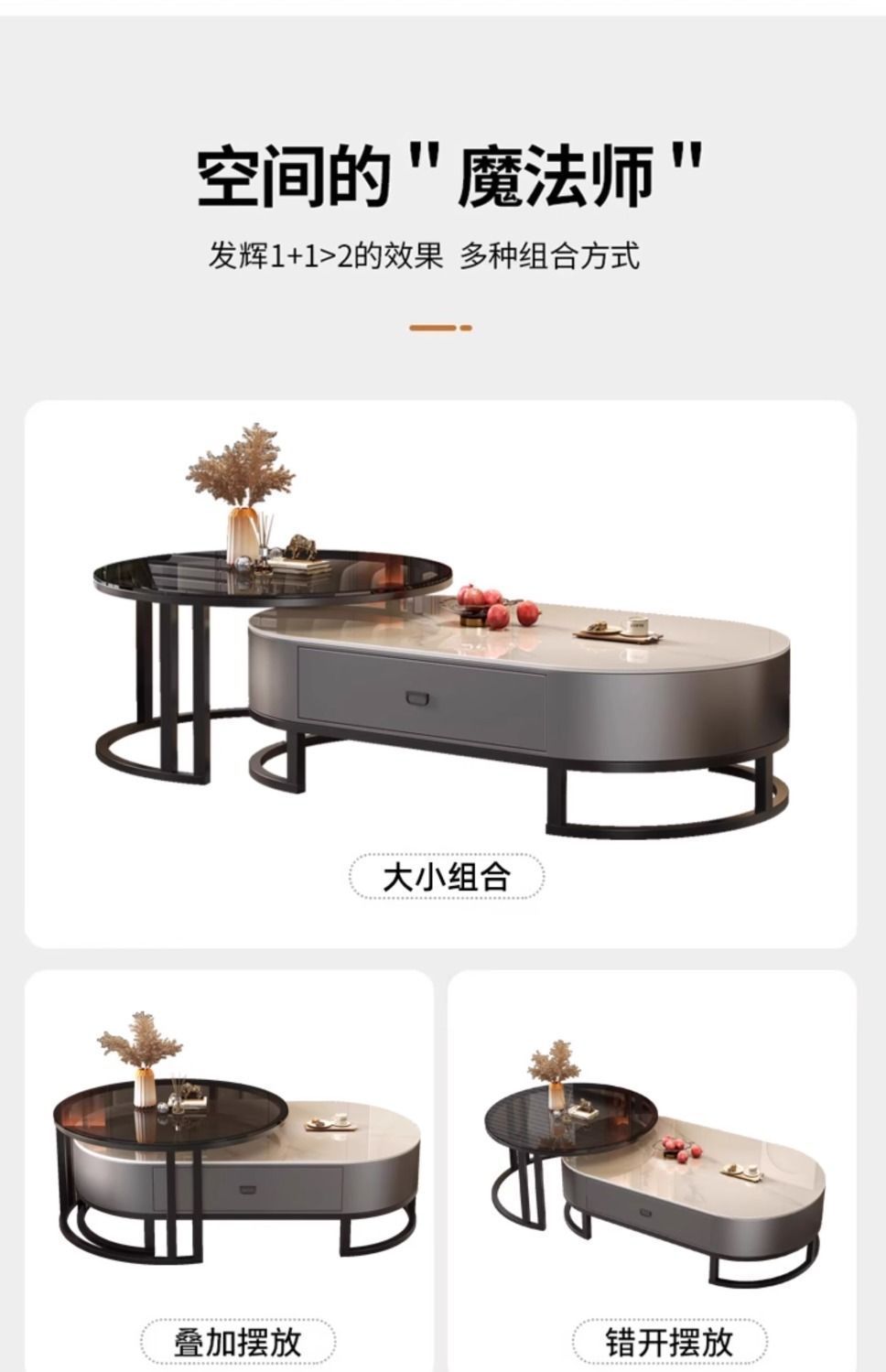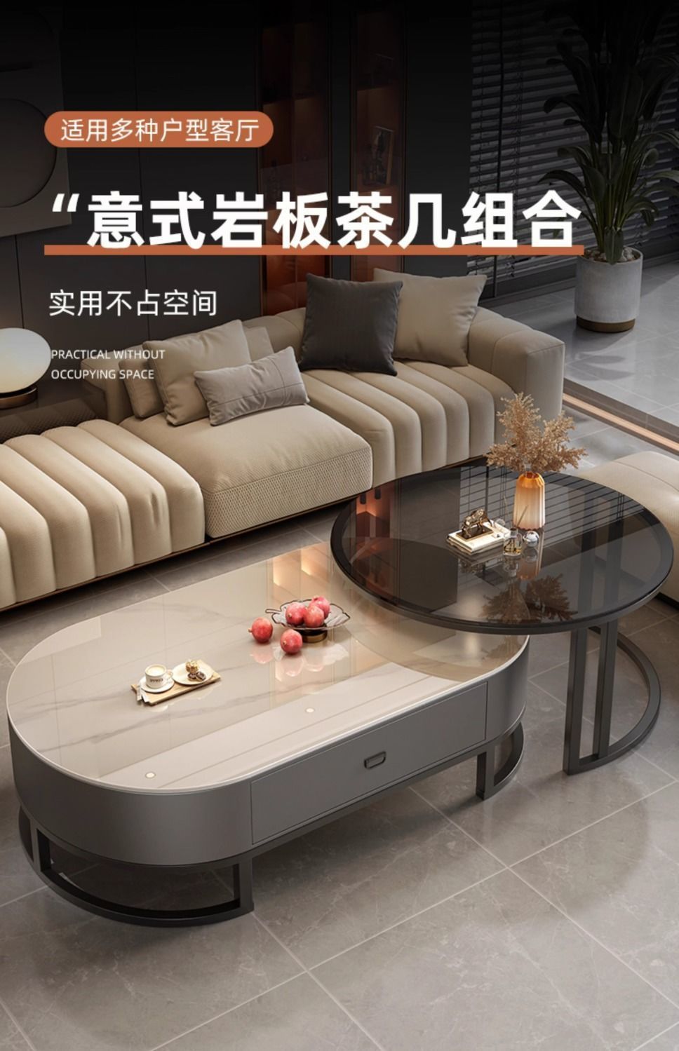 록 보드 커피 테이블 Ins 스타일 홈 거실 빛 럭셔리 현대 간단한 작은 아파트 타원형 2025 새로운 차 테이블스토어 가기