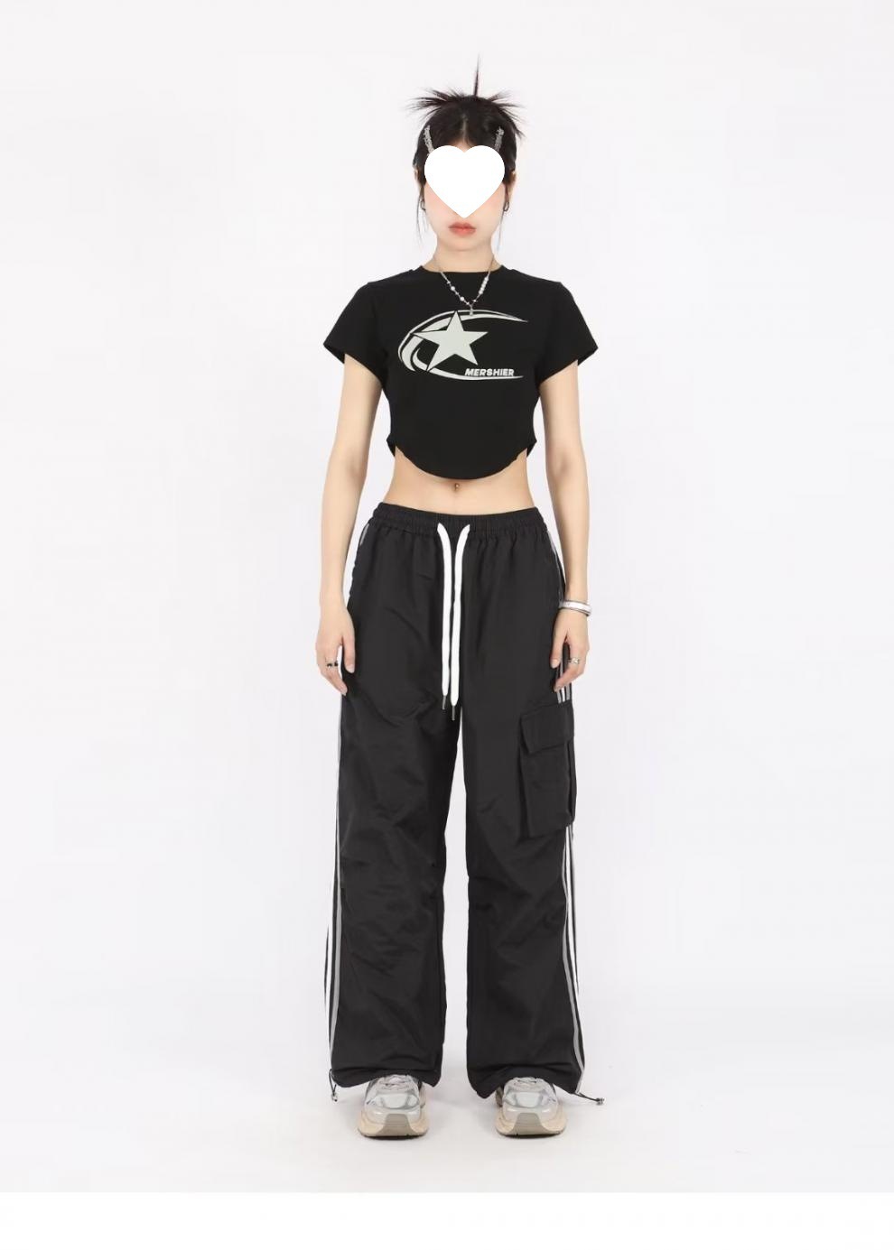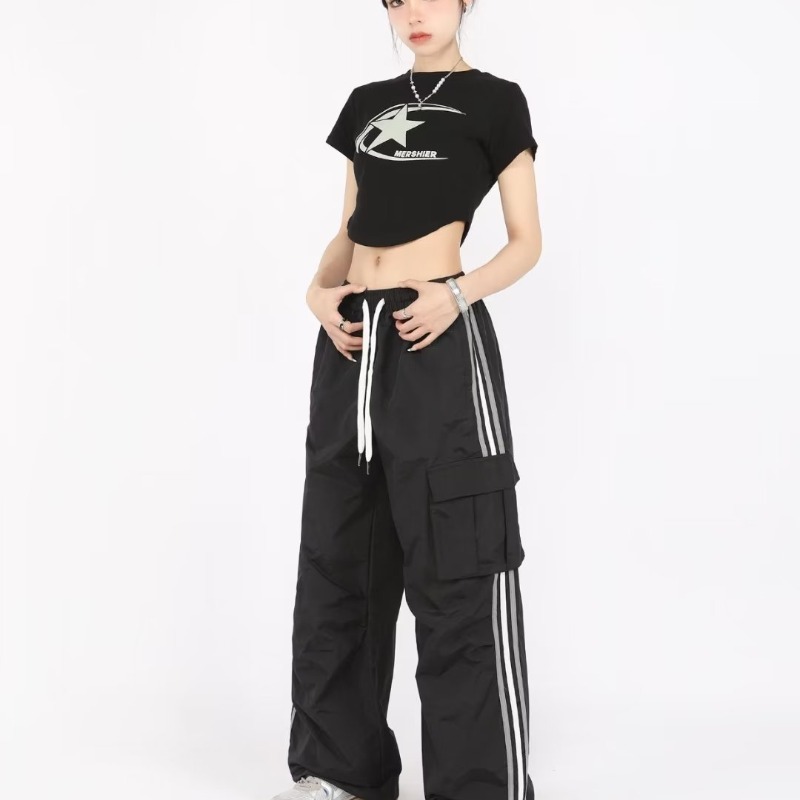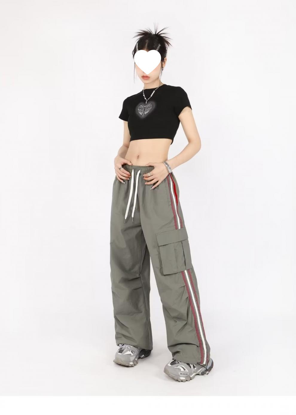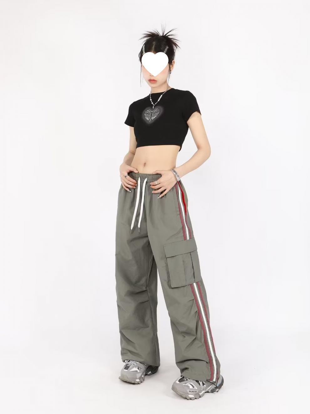 아메리칸 스타일 오버홀 여성 여름 느슨한 스트레이트 와이드 레그 캐주얼 바지 레트로 컬러 스트라이프 스포츠 충전 바지 트렌디스토어 가기