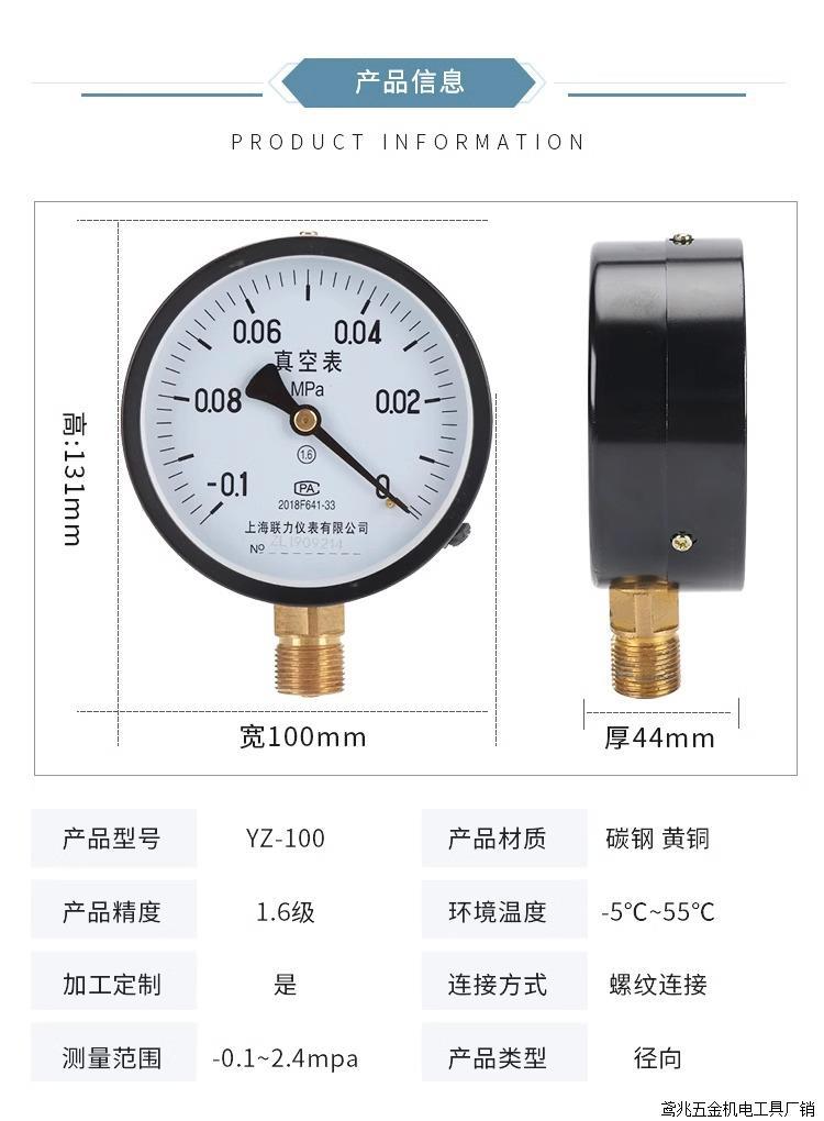 진공 압력 게이지 YZ-100 진공 게이지 음압 게이지-0.1-0/0.15/0.3/0.5/0.9Mpa 직접 공장