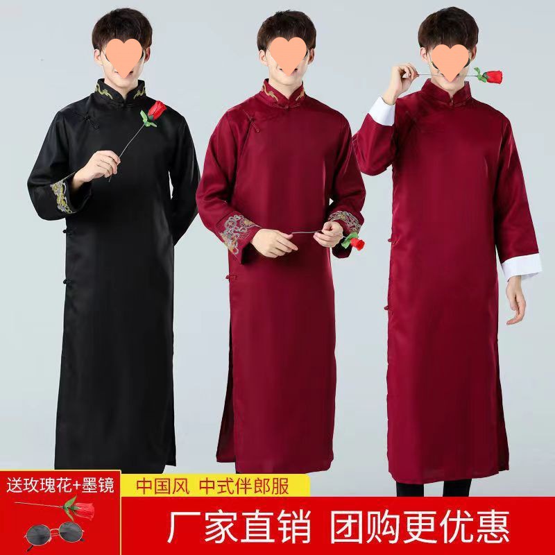 최고의 남성 의류 중국식 형제 그룹 의류 중국식 웨딩 웨딩 원피스 Xiangtong 의류 긴 가운 만다린 가운 탕 세트스토어 가기