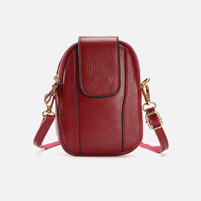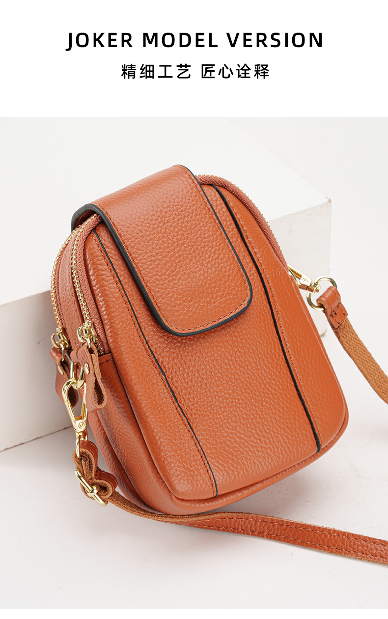 소 가죽 여성 어깨 메신저 가방 2024 새로운 가죽 휴대 전화 가방 INS 작은 둥근 가방 국경 폭발