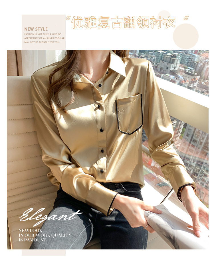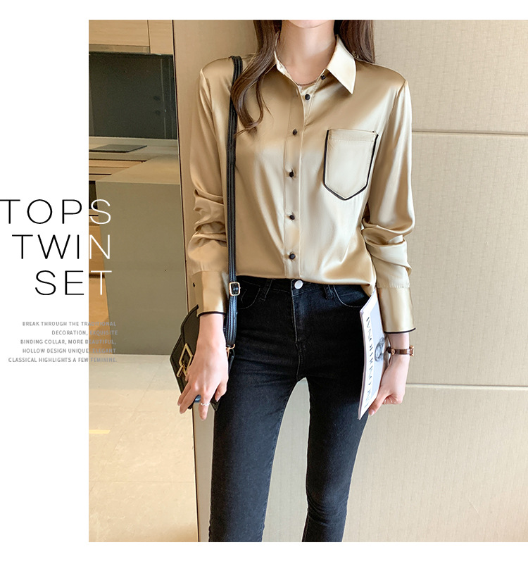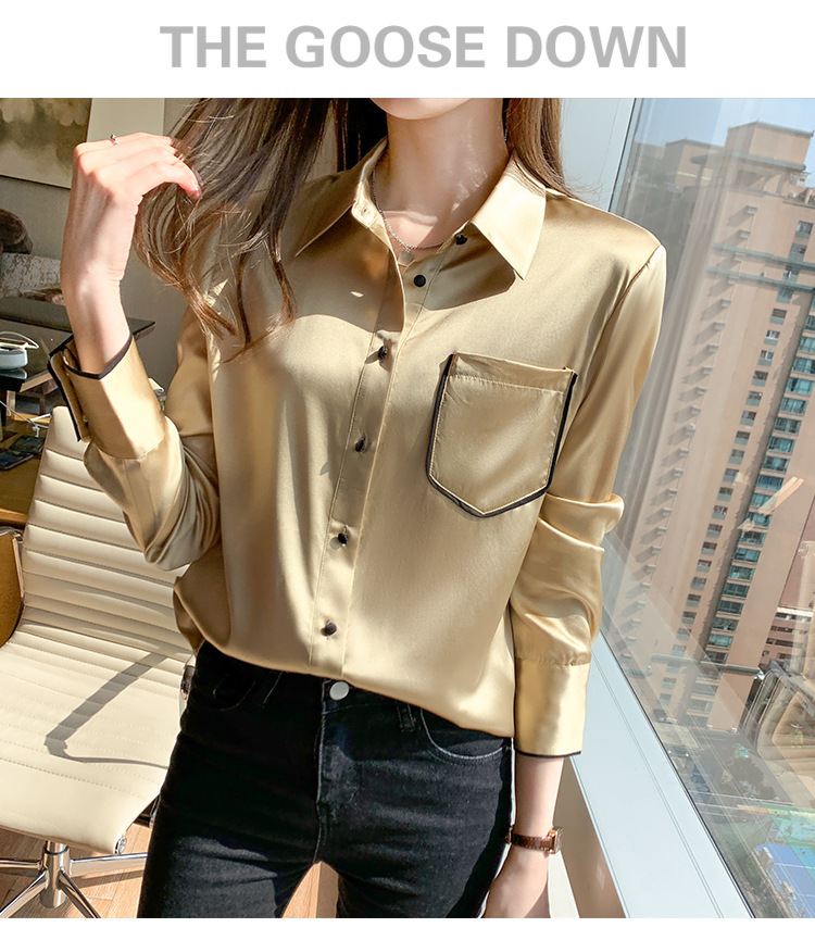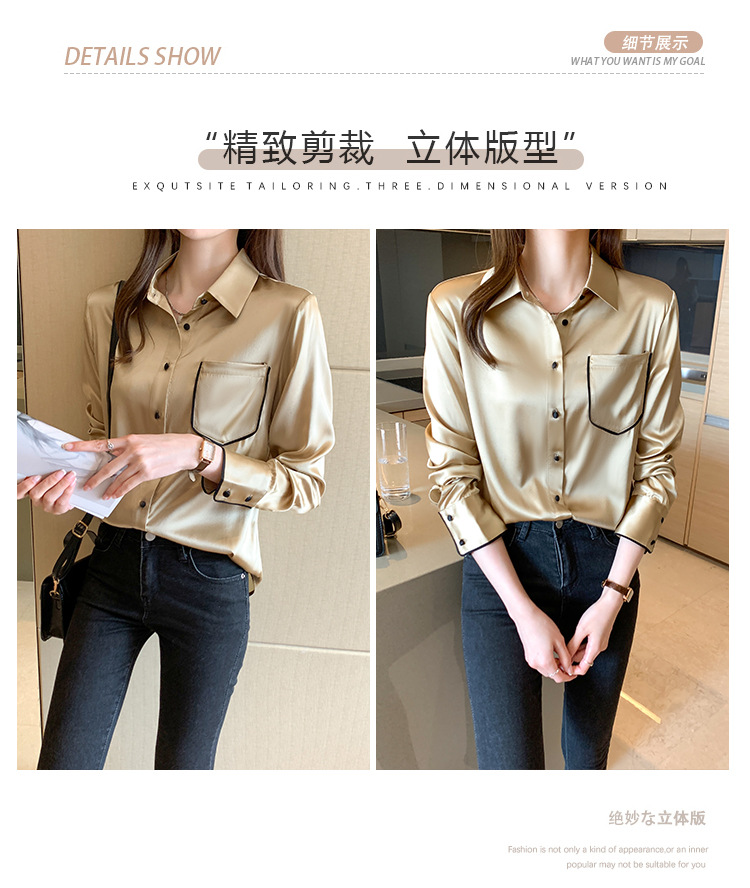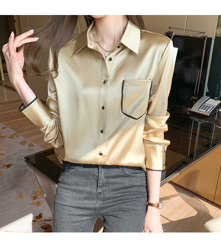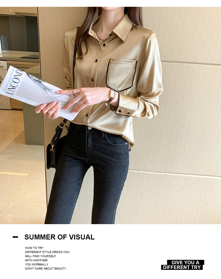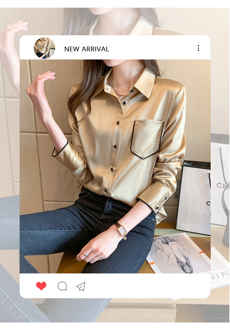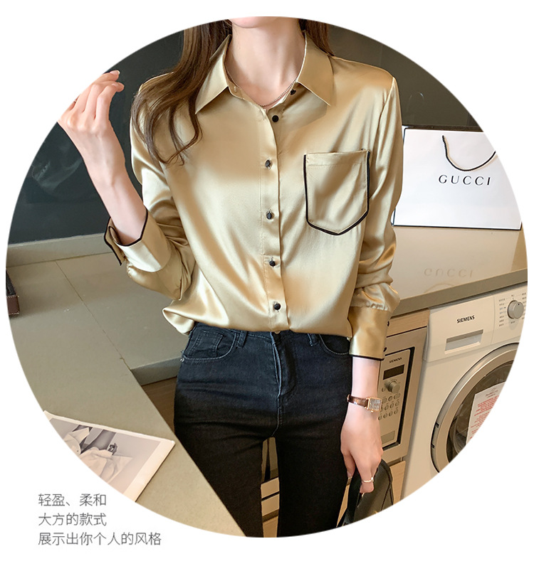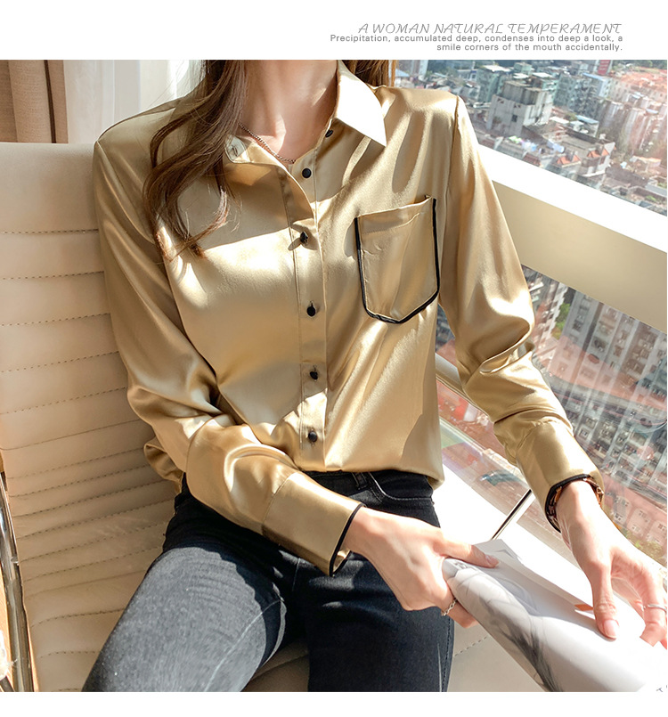 특별 제공 새틴 모조 실크 셔츠 여성 긴팔 셔츠 전문 셔츠 2025 새로운 패션 쉬폰 셔츠 탑스토어 가기
