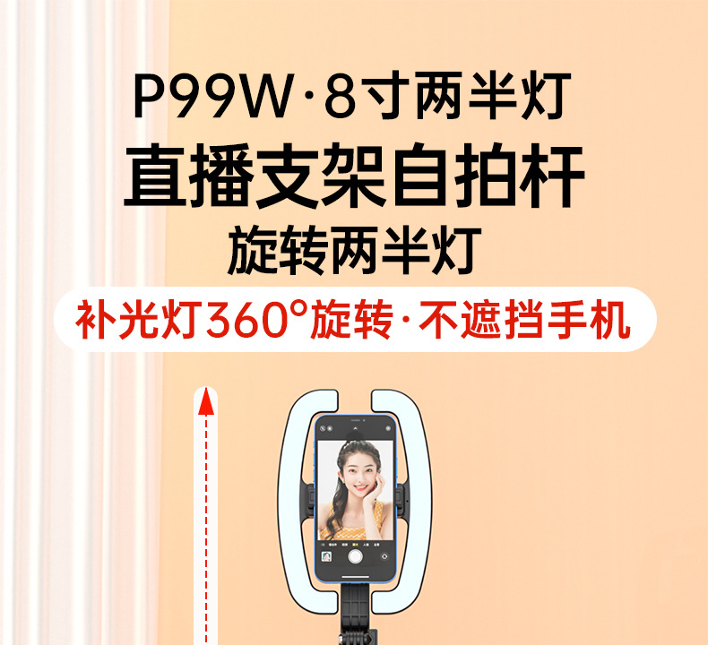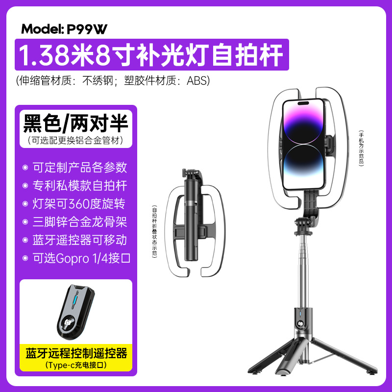 맞춤형 P99W 휴대 전화 조명 보충 브래킷 블루투스 원격 제어 셀카 스틱 떨림 Taobao 라이브 뷰티 조명 보충