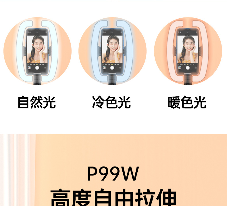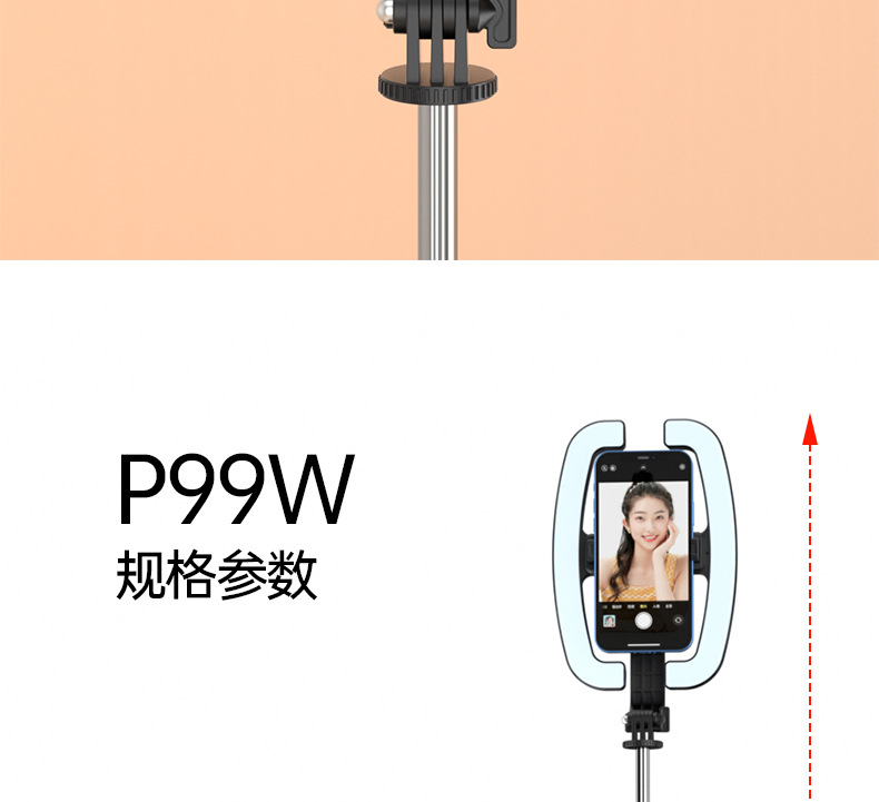 定制P99W手机补光灯支架带蓝牙遥控自拍杆抖音淘宝直播美颜补光灯定制P99W手机补光灯支架带蓝牙遥控自拍杆抖音淘宝直播美颜补光灯定制