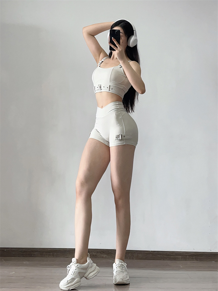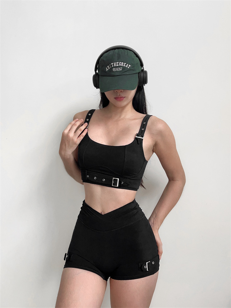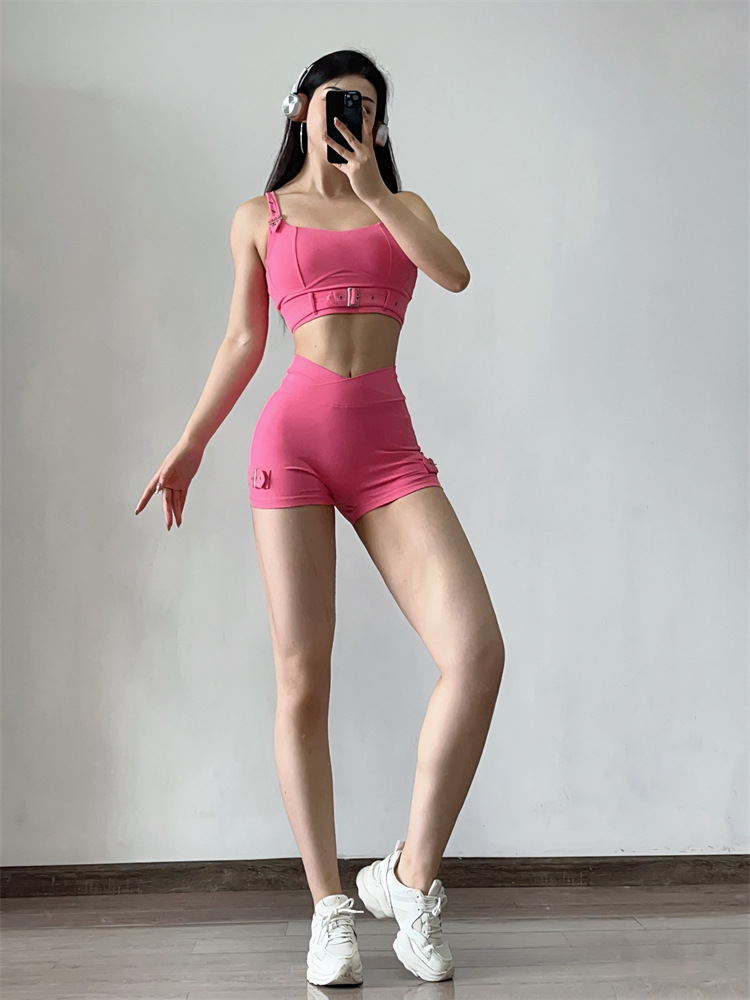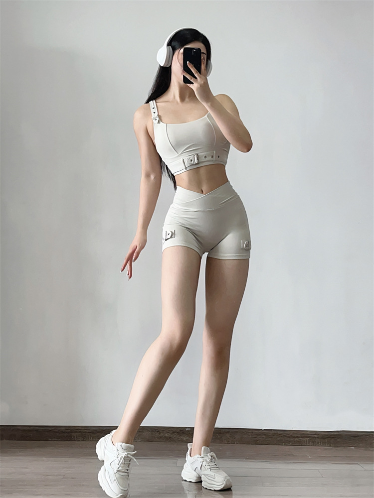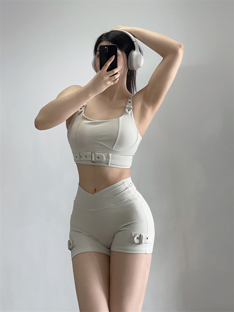 소스 플랜 스포츠 반바지 요가 3 분 바지 조정 가능한 피트니스 의류 세트 가슴 패드 Camisole 1544