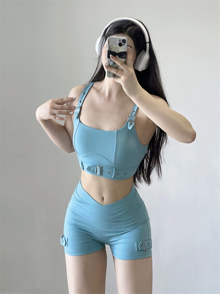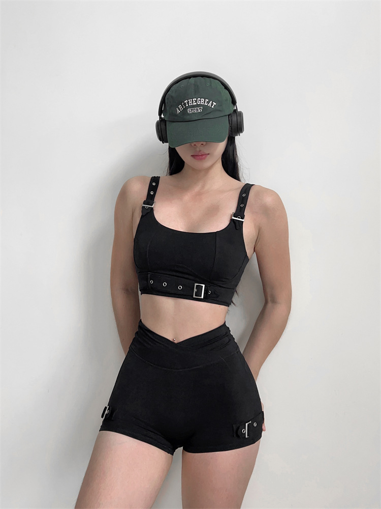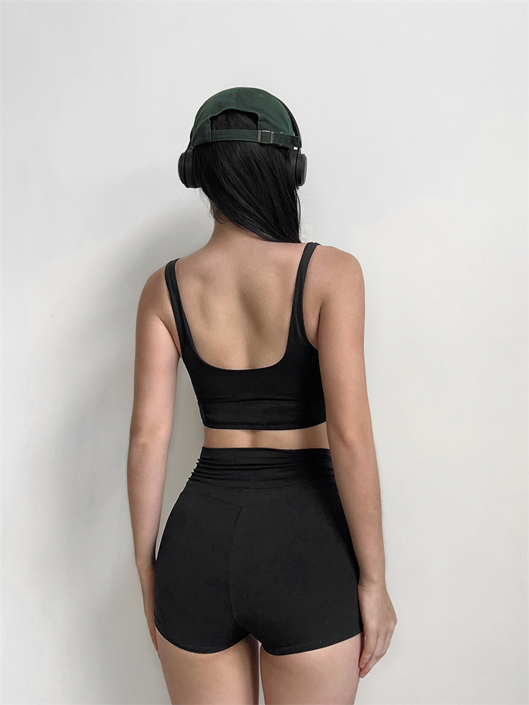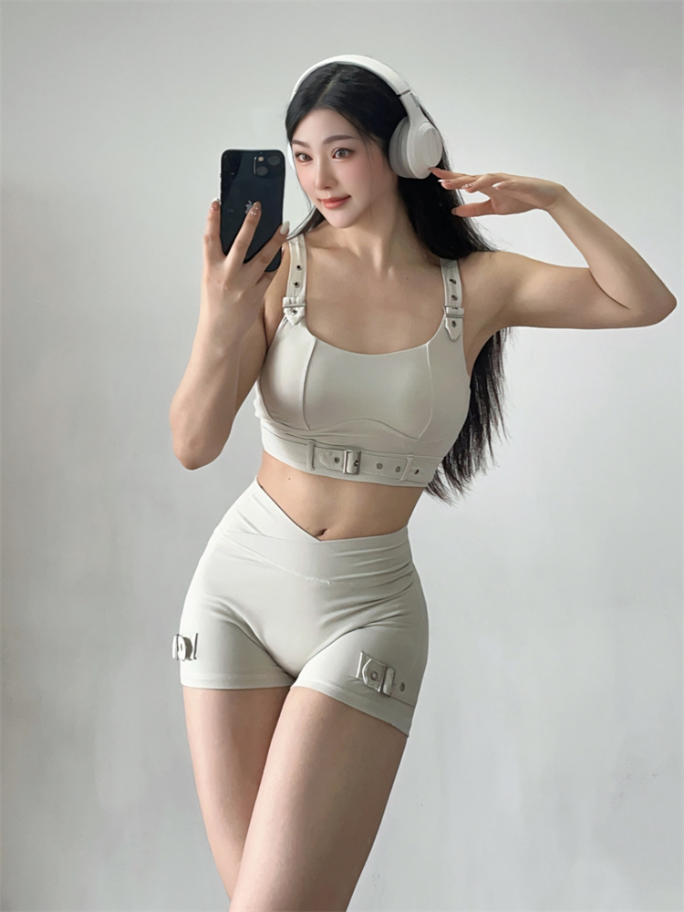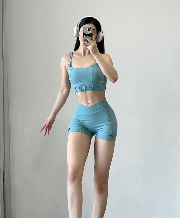 소스 플랜 스포츠 반바지 요가 3 분 바지 조정 가능한 피트니스 의류 세트 가슴 패드 Camisole 1544