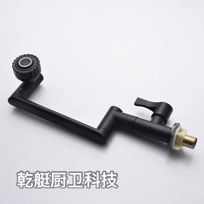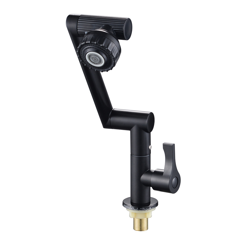 운이 좋은 고양이 단일 수도꼭지 1080 도 회전 스테인레스 스틸 수도꼭지 검은 기계 팔 수평 단일 차가운 수도꼭지