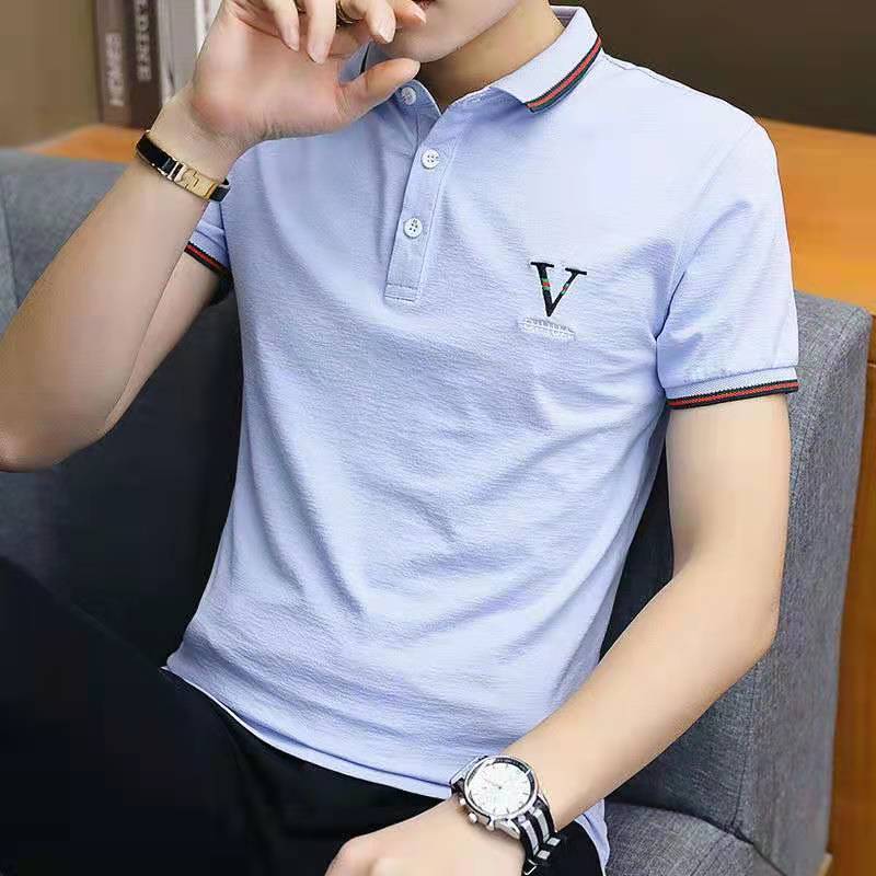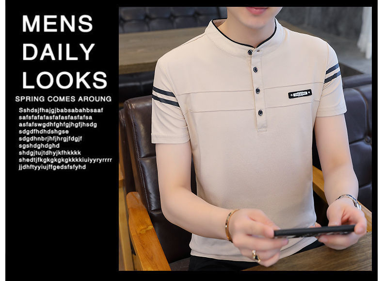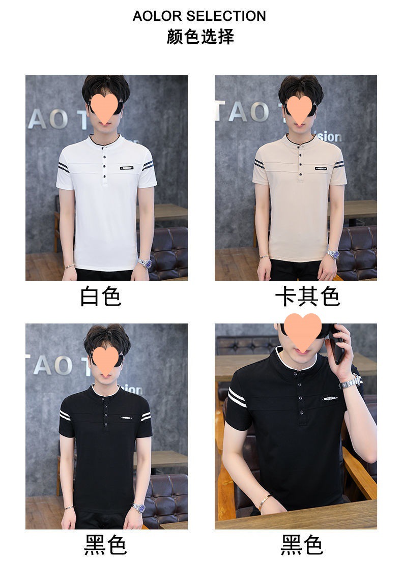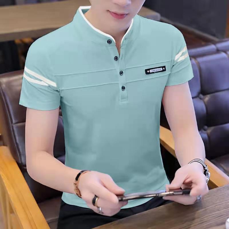 여름 남자 반팔 셔츠 한국 터틀넥 셔츠 유행 청소년 기지 셔츠 남자 탑