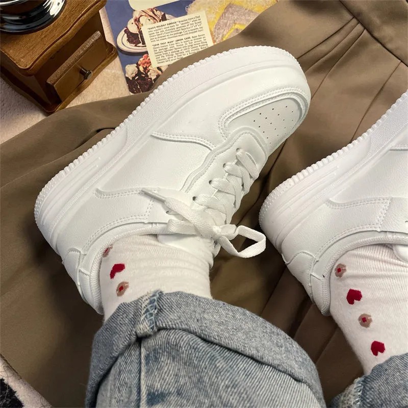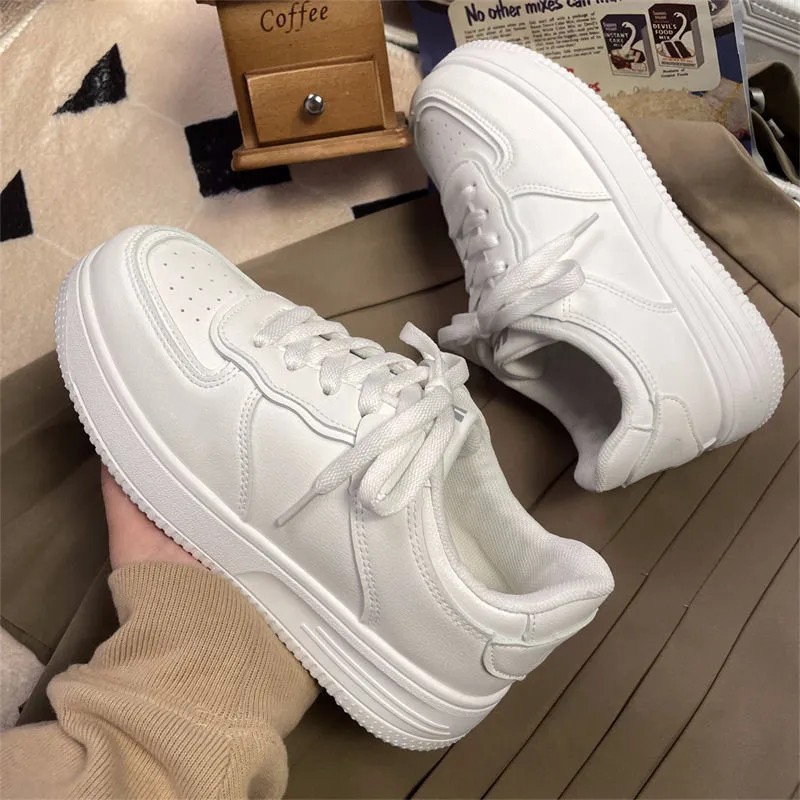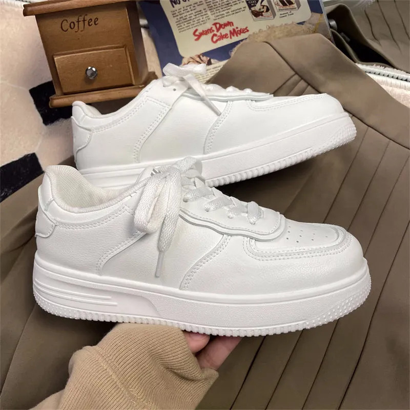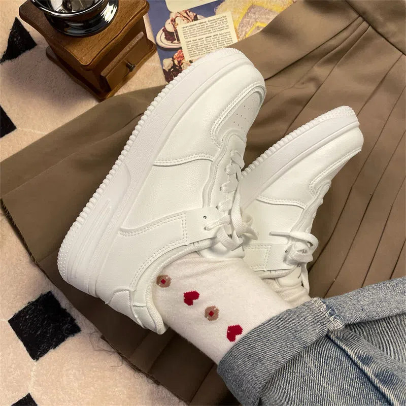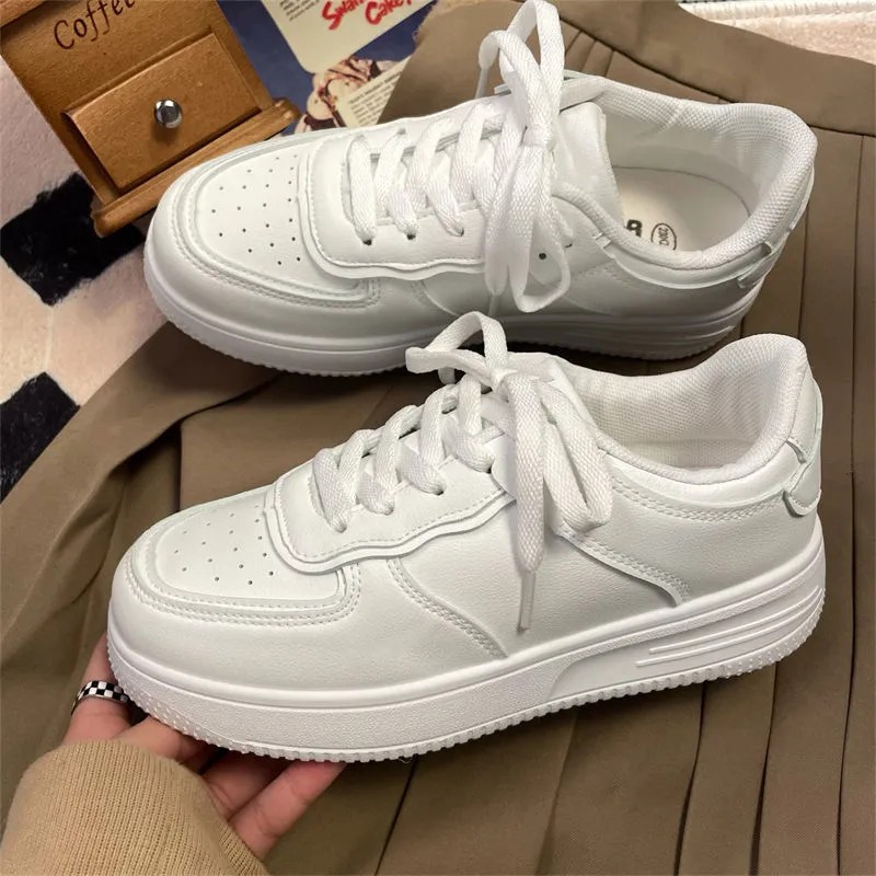 통기성 화이트 슈즈 여성 2024 년 새로운 가을 Ins 트렌디 한 한국 스타일 올 매치 캐주얼 스포츠 플랫 슈즈