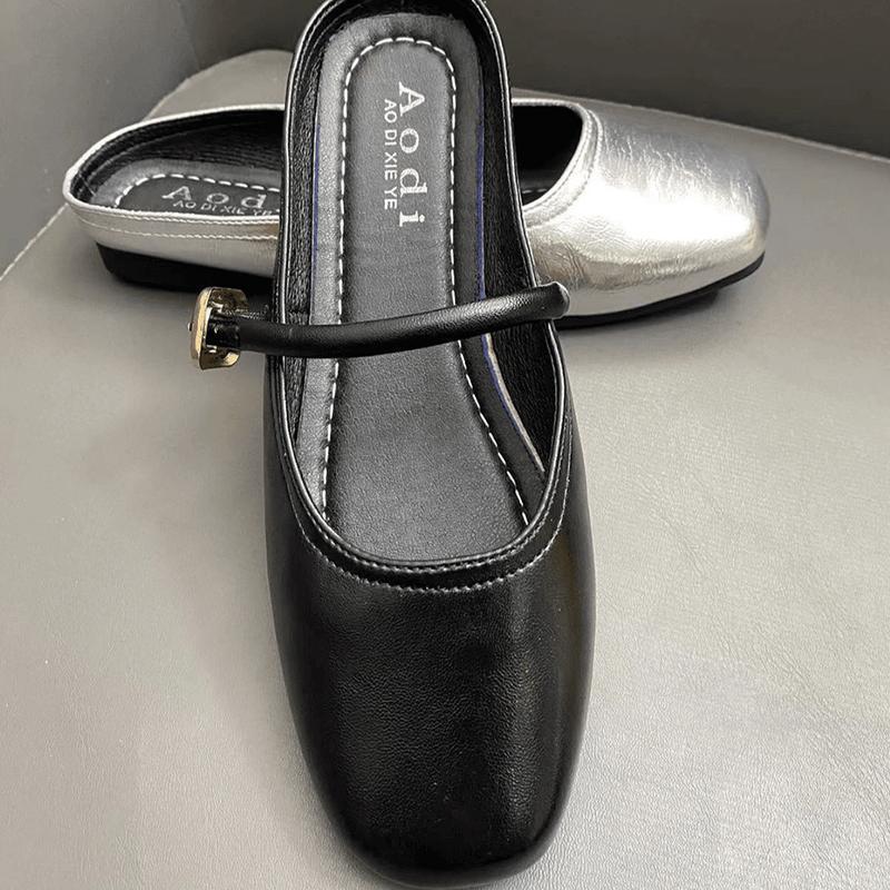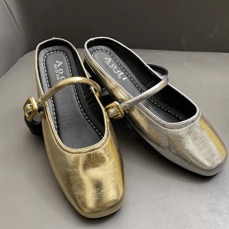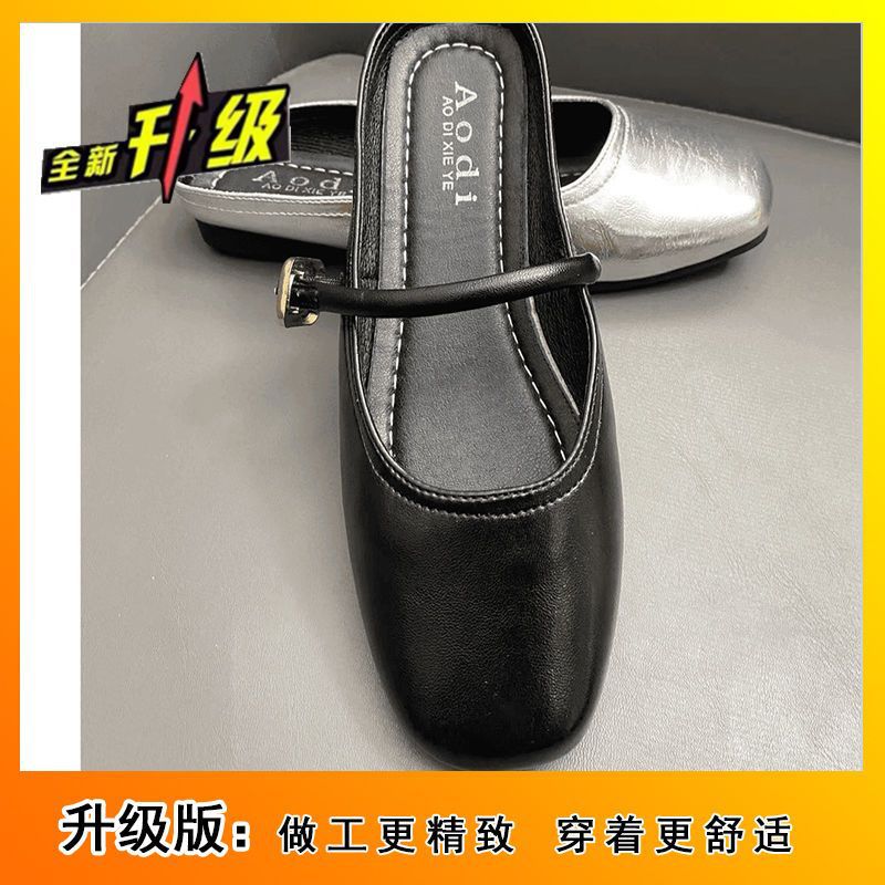플랫 스퀘어 실버 프랑스 바오 터우 여성 2024 년 여름과 가을 새로운 얕은 완두콩 할머니 메리 제인 신발스토어 가기