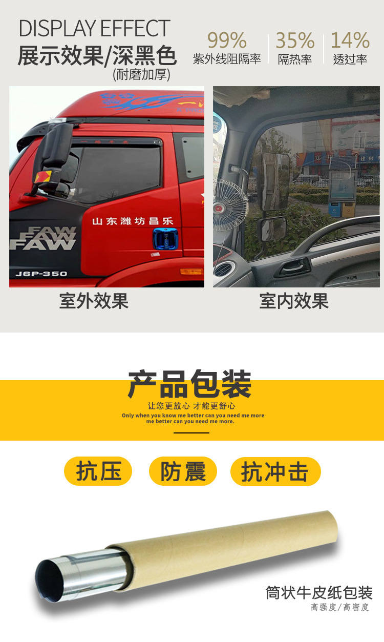 멀티 플랫폼 세대 트럭 선 스크린 폭발 방지 단열 필름 이중 열 트럭 창 필름 반 태양 블랙 필름