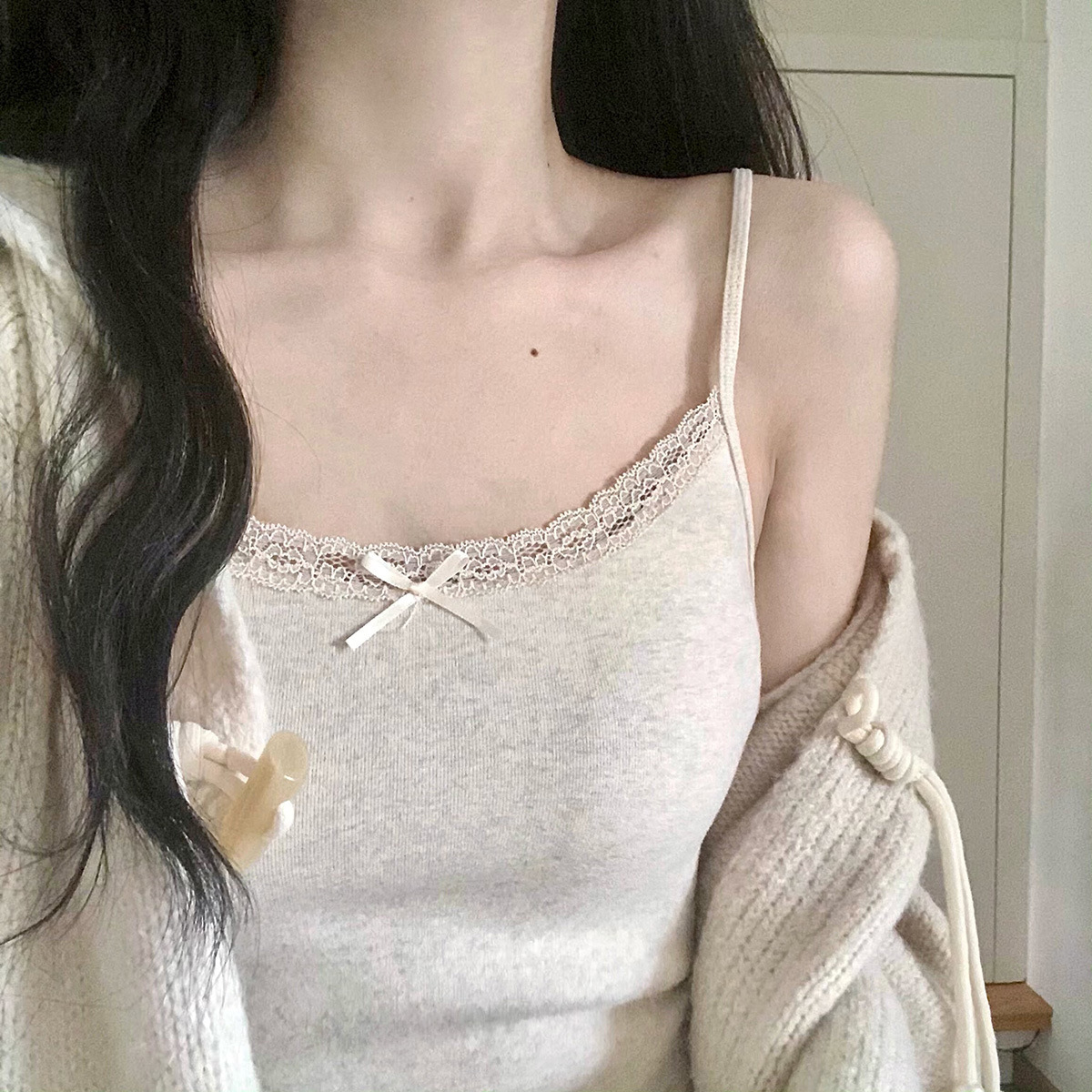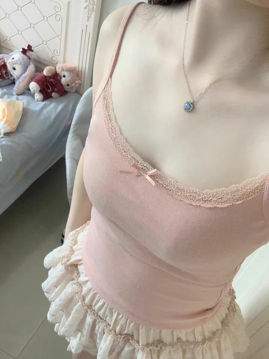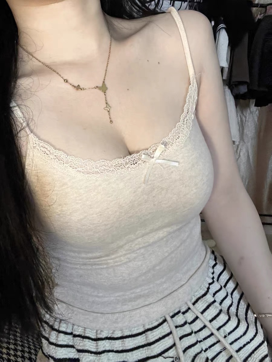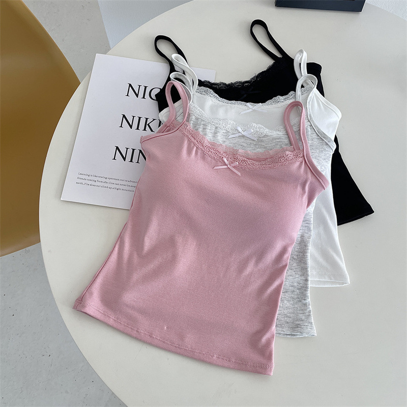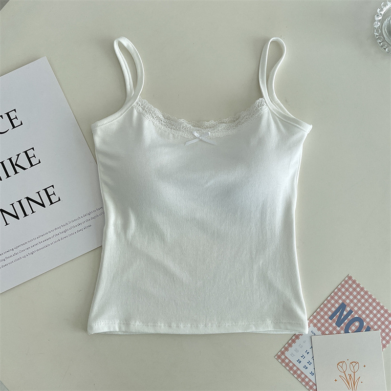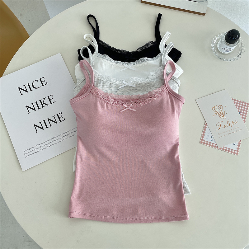 가슴 패드 안티 레이스 여름 레이스 조끼 여자 올 매치 탑 외부 착용 내베이스 작은 슬링 아름다운 등