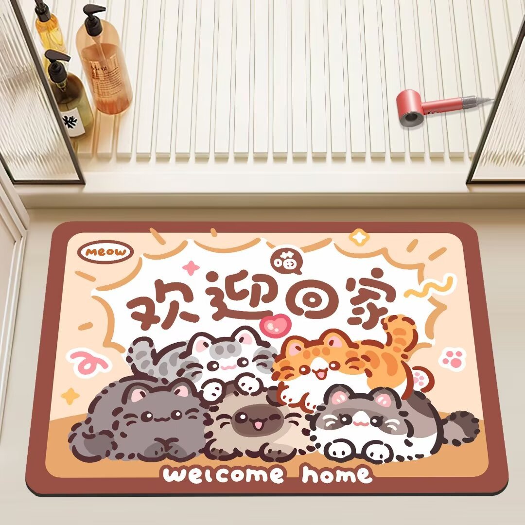 귀여운 만화 스타일의 규조토 매트, 욕실 입구용 흡수성, 속건성, 미끄럼 방지 매트, 욕실 매트, 오염 방지 및 내마모성스토어 가기