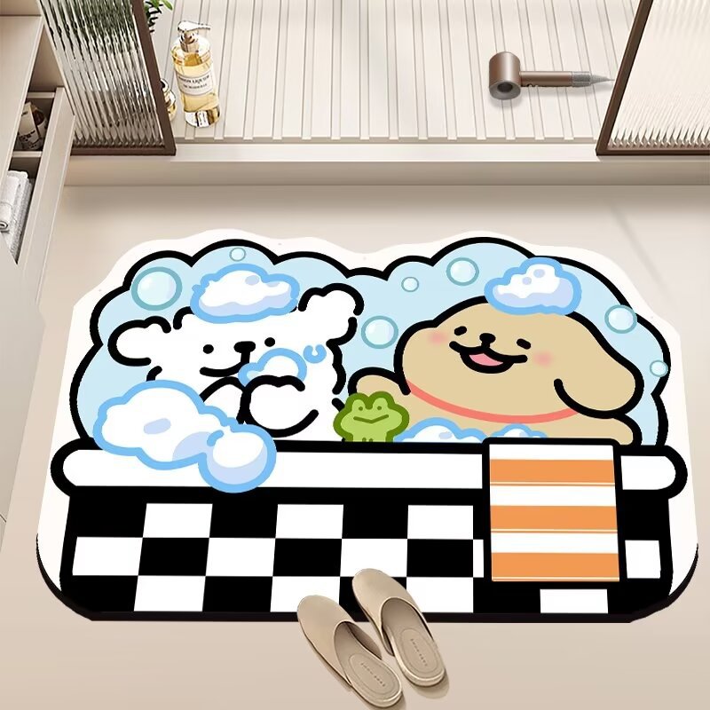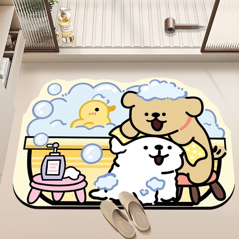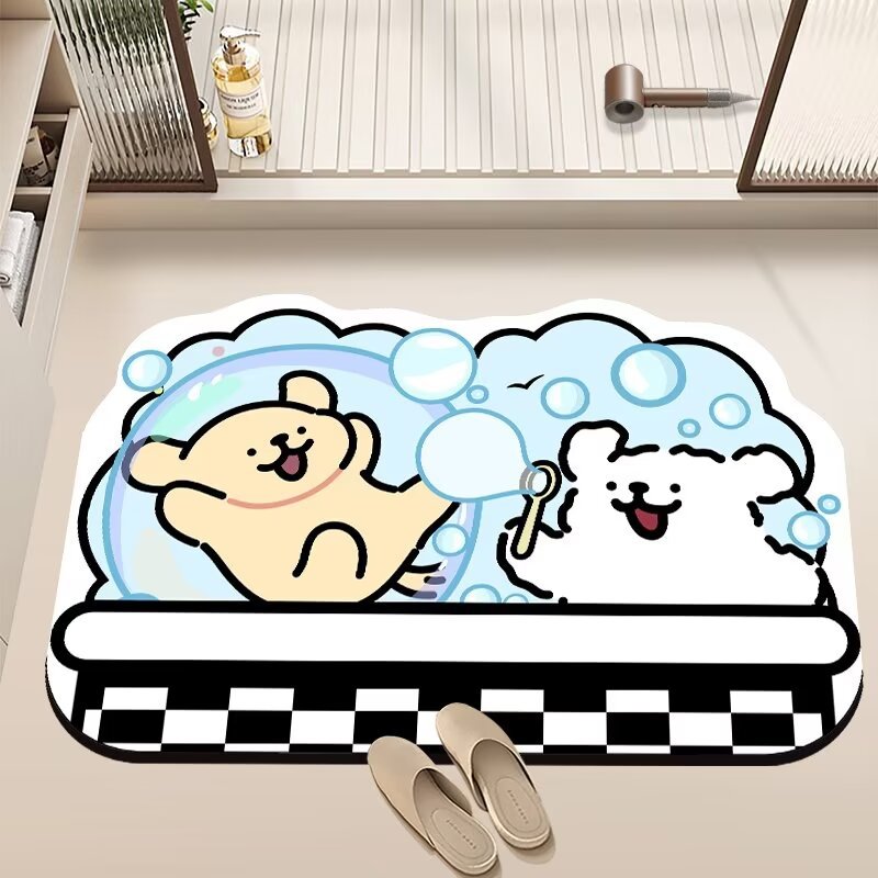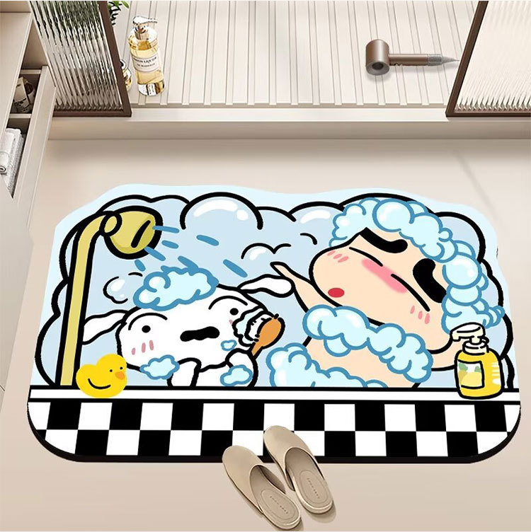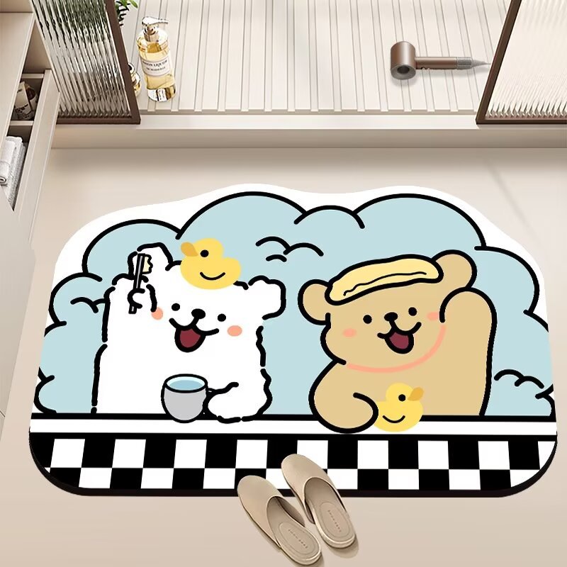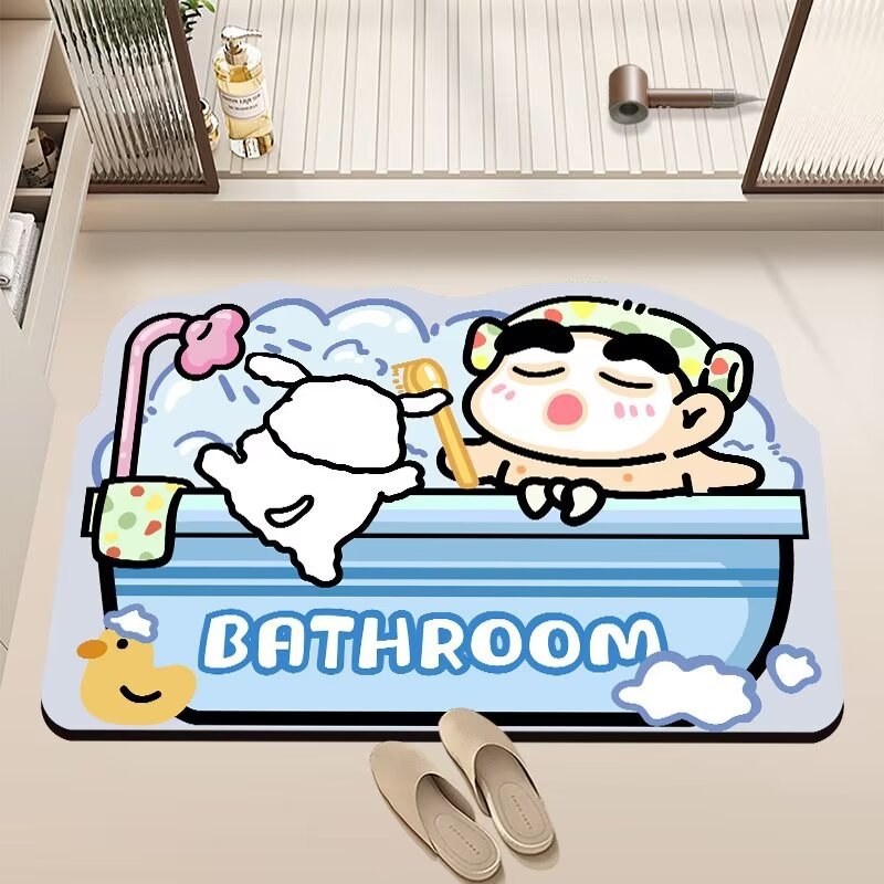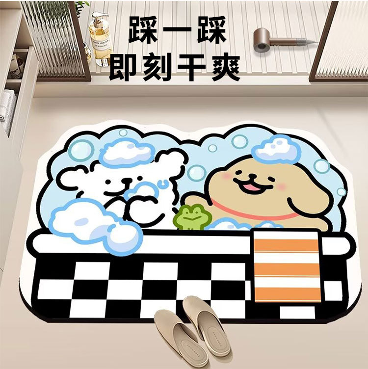 귀여운 만화 스타일의 규조토 매트, 욕실 입구용 흡수성, 속건성, 미끄럼 방지 매트, 욕실 매트, 오염 방지 및 내마모성