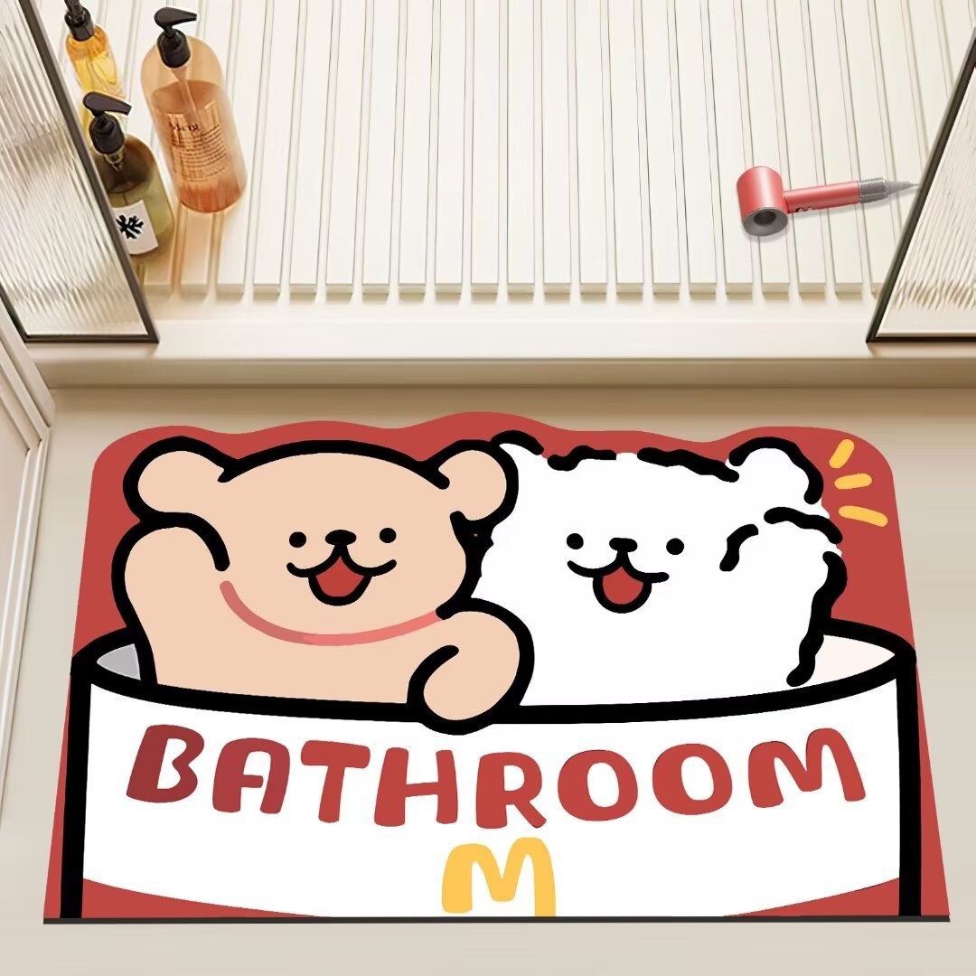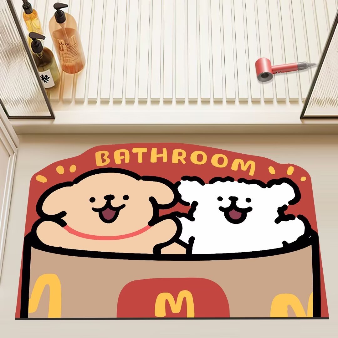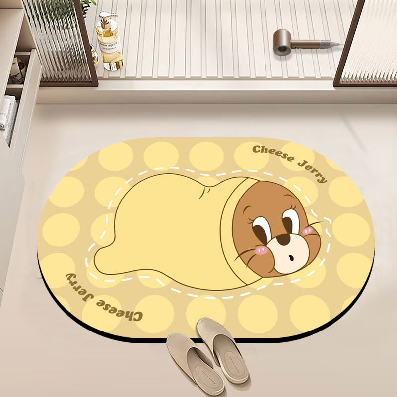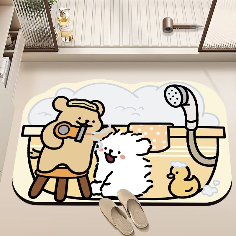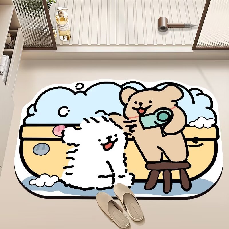 귀여운 만화 스타일의 규조토 매트, 욕실 입구용 흡수성, 속건성, 미끄럼 방지 매트, 욕실 매트, 오염 방지 및 내마모성