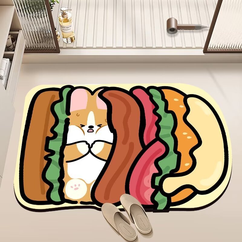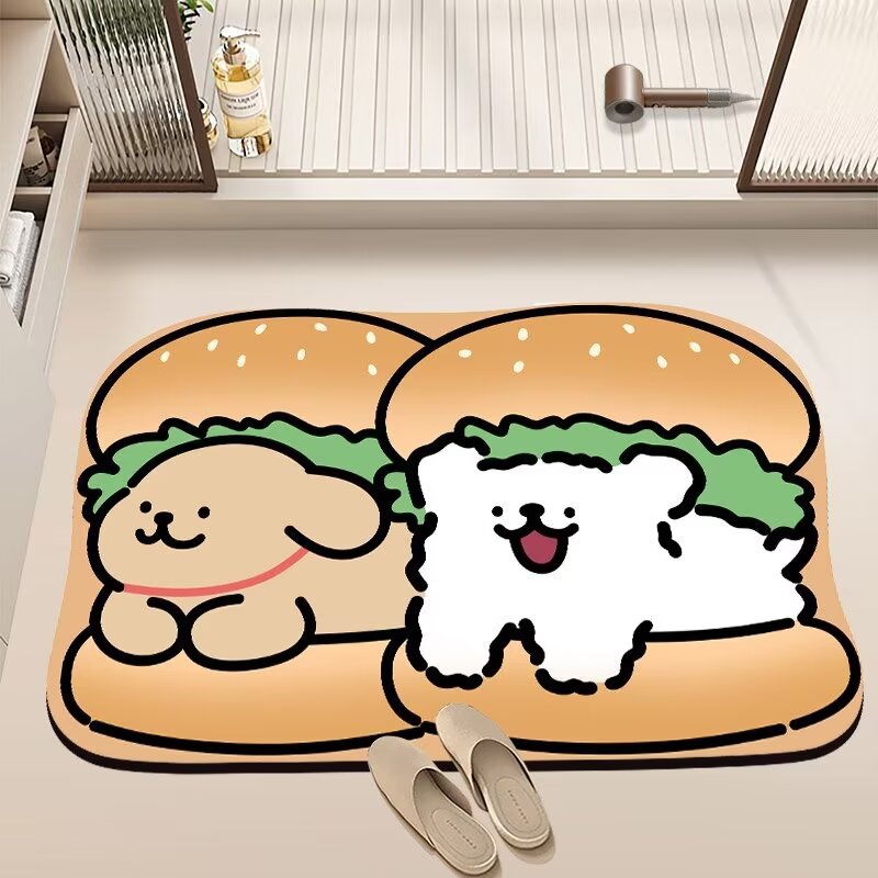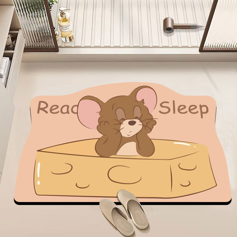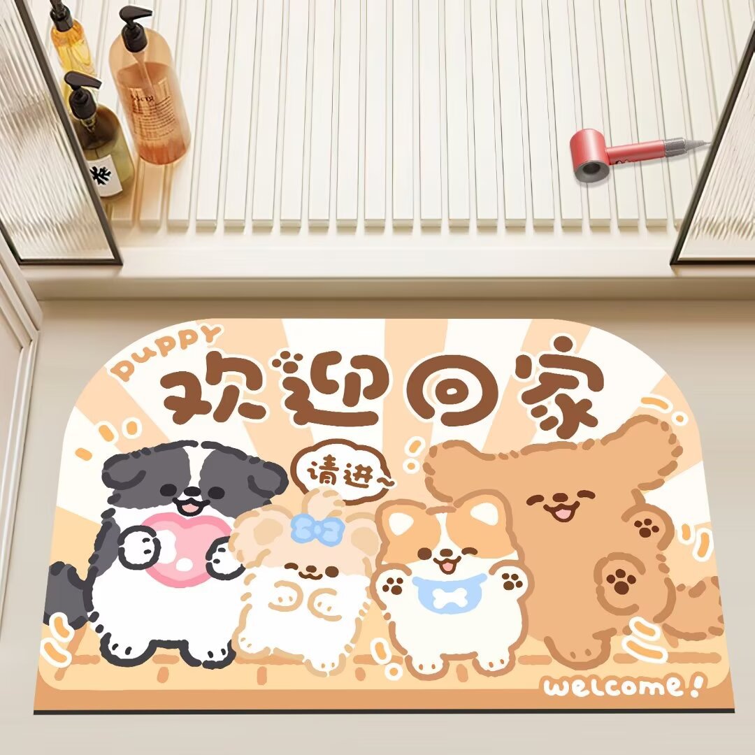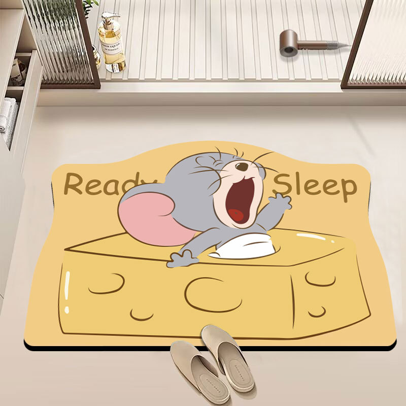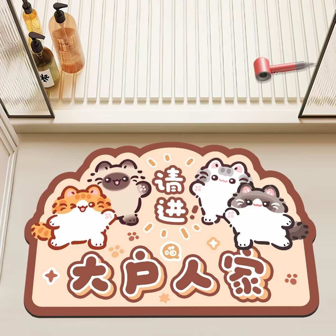 귀여운 만화 스타일의 규조토 매트, 욕실 입구용 흡수성, 속건성, 미끄럼 방지 매트, 욕실 매트, 오염 방지 및 내마모성