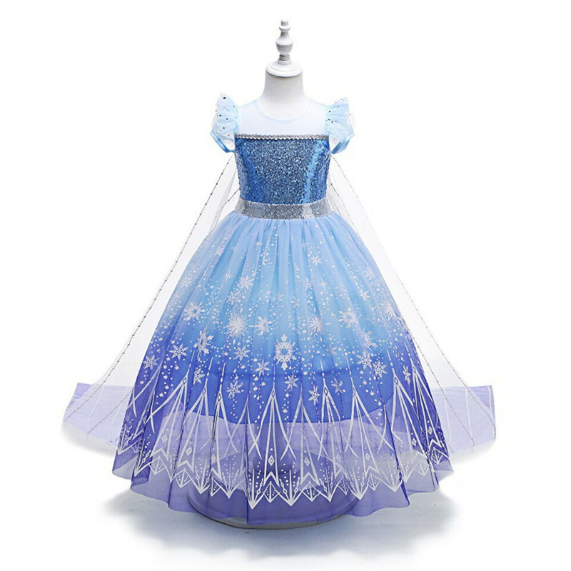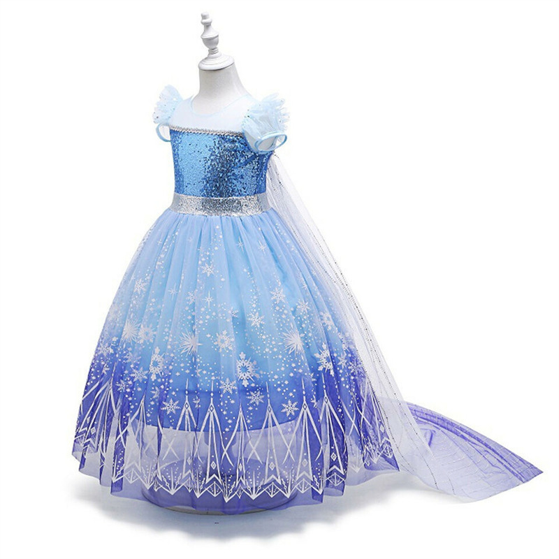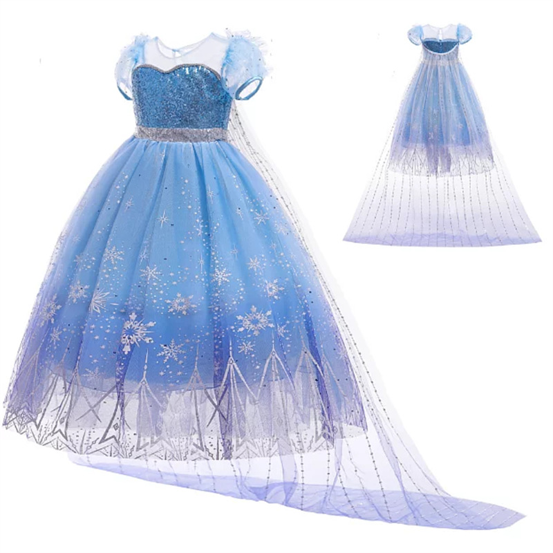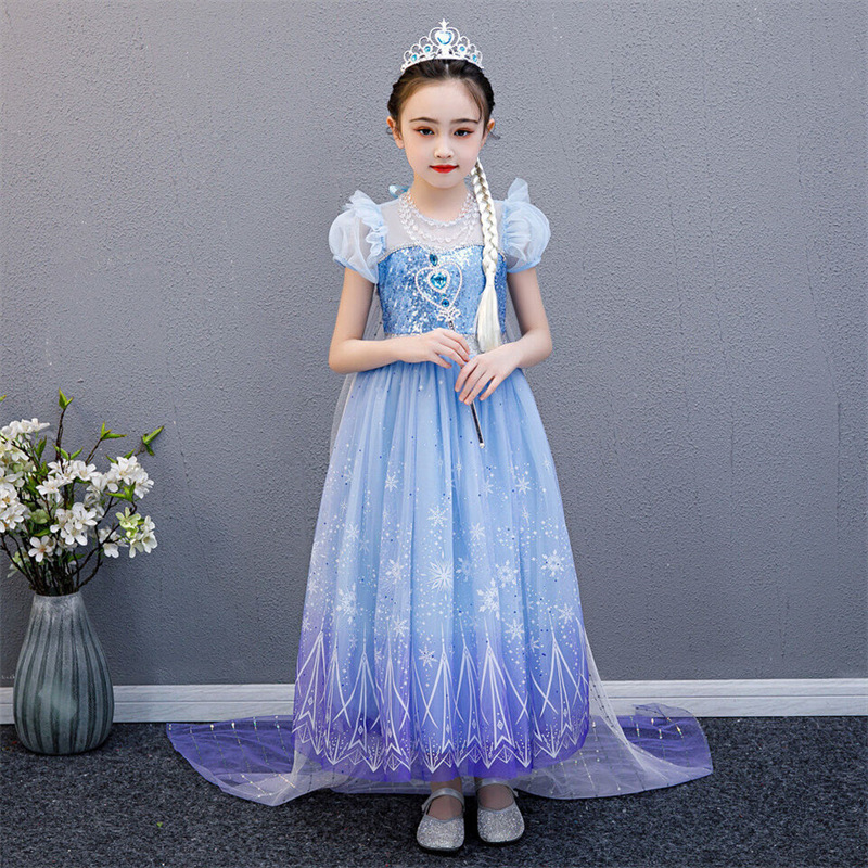 여아용 발광 롱 드레스 겨울왕국 엘사 공주 드레스 퍼프 소매 드레스 탈부착 가능한 바닥 길이 망사 드레스스토어 가기