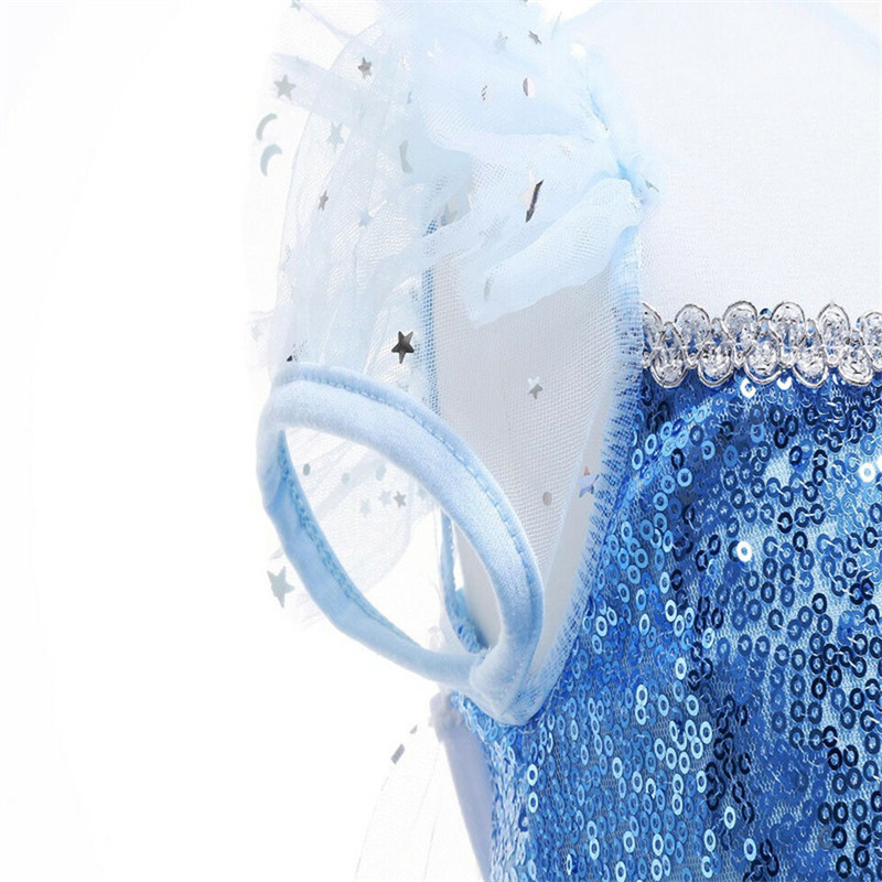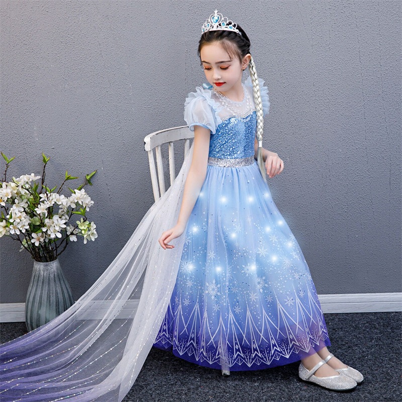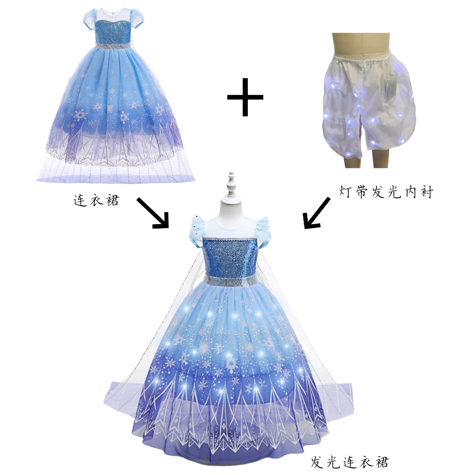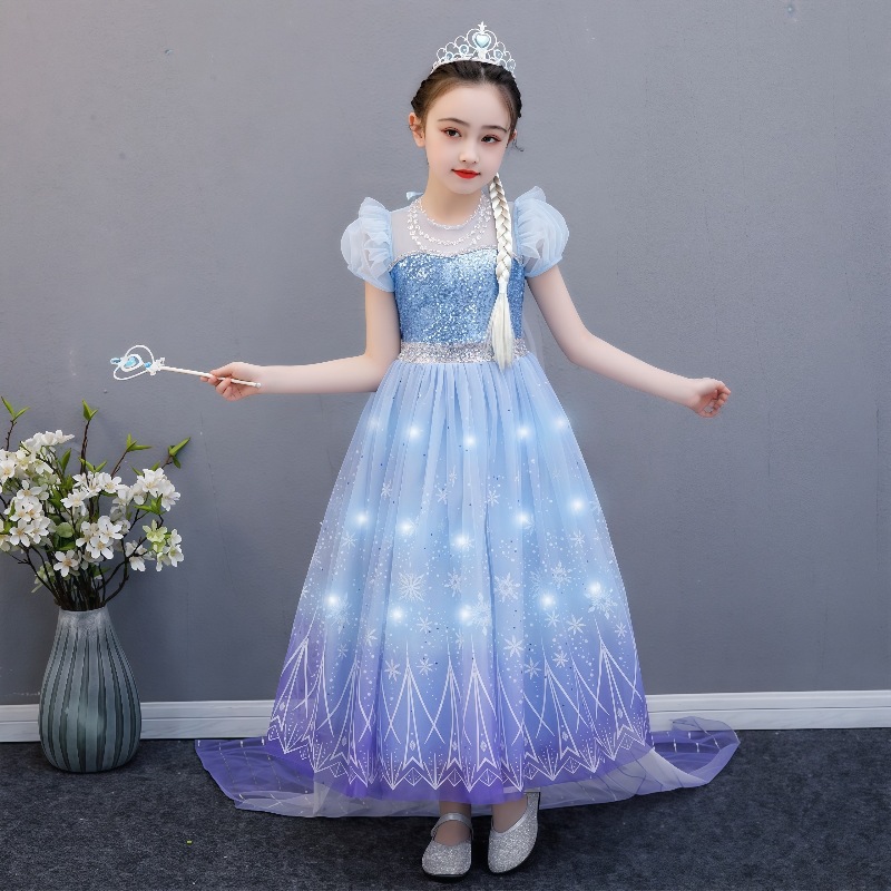 여아용 발광 롱 드레스 겨울왕국 엘사 공주 드레스 퍼프 소매 드레스 탈부착 가능한 바닥 길이 망사 드레스