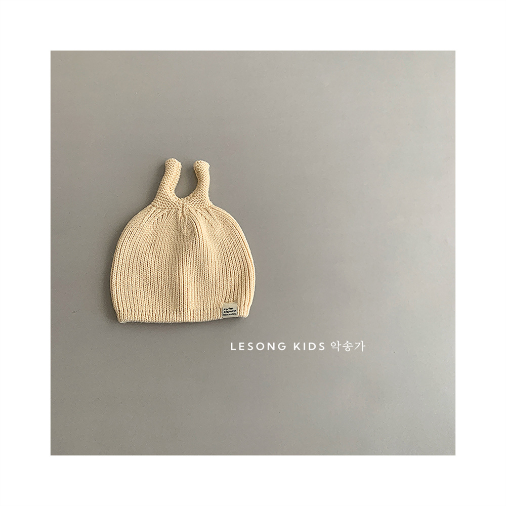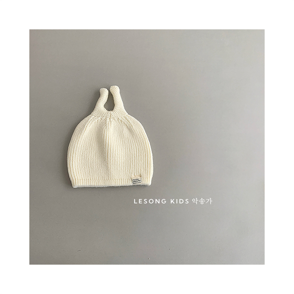 Ins2024 봄과 가을 한국 아기 귀여운 뿔 솔리드 컬러 울 모자 아기 올 매치 따뜻한 풀오버 니트 모자
