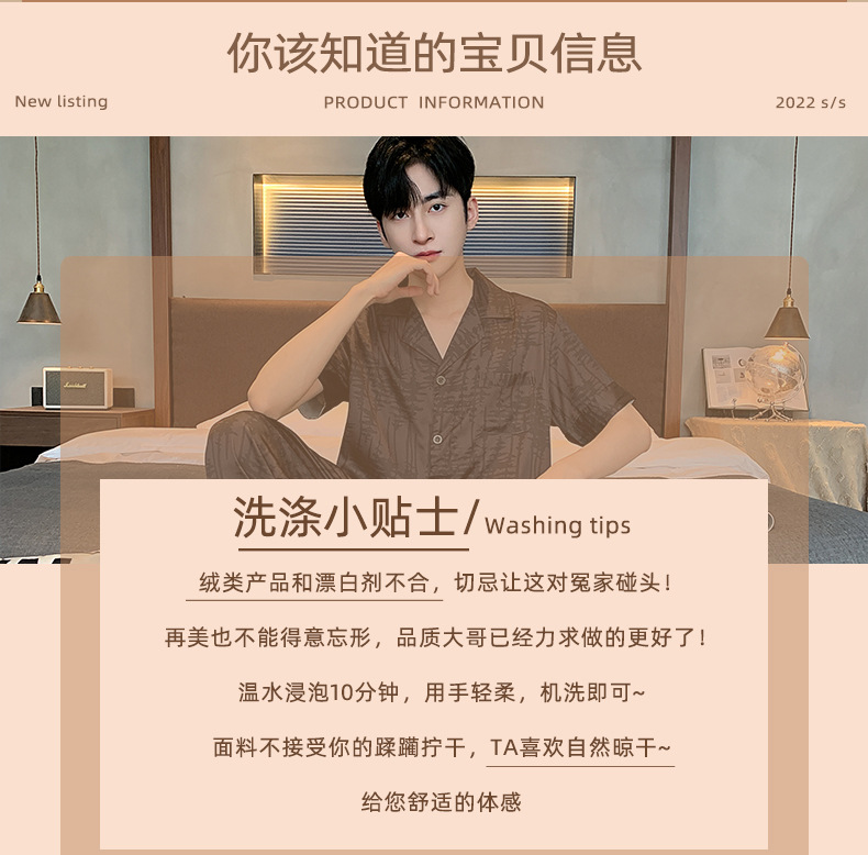 2024 여름 새로운 아이스 실크 잠옷 남자의 V-Neck 얇은 바지 짧은 소매 줄무늬 카디건 캐주얼 홈 의류 세트스토어 가기