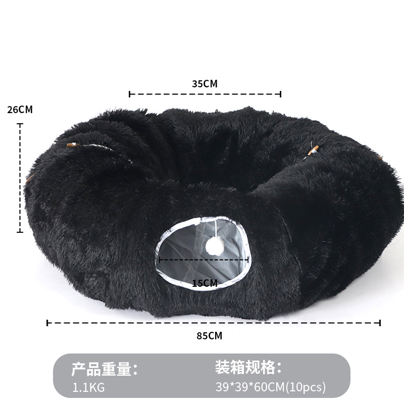 아마존 베스트셀러 공장제작 플러시 접이식 도넛 애완동물 침대 따뜻한 재고 있음 고양이 터널 고양이 침대 겨울용
