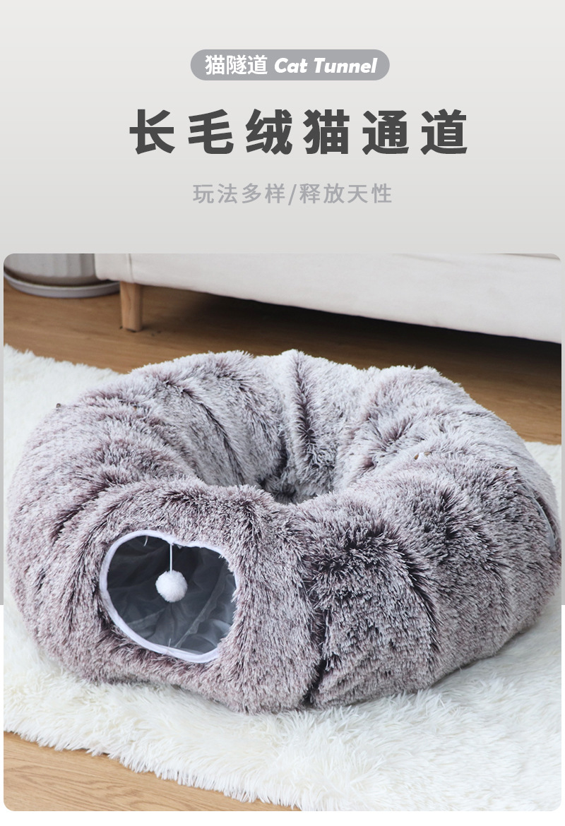 아마존 베스트셀러 공장제작 플러시 접이식 도넛 애완동물 침대 따뜻한 재고 있음 고양이 터널 고양이 침대 겨울용스토어 가기