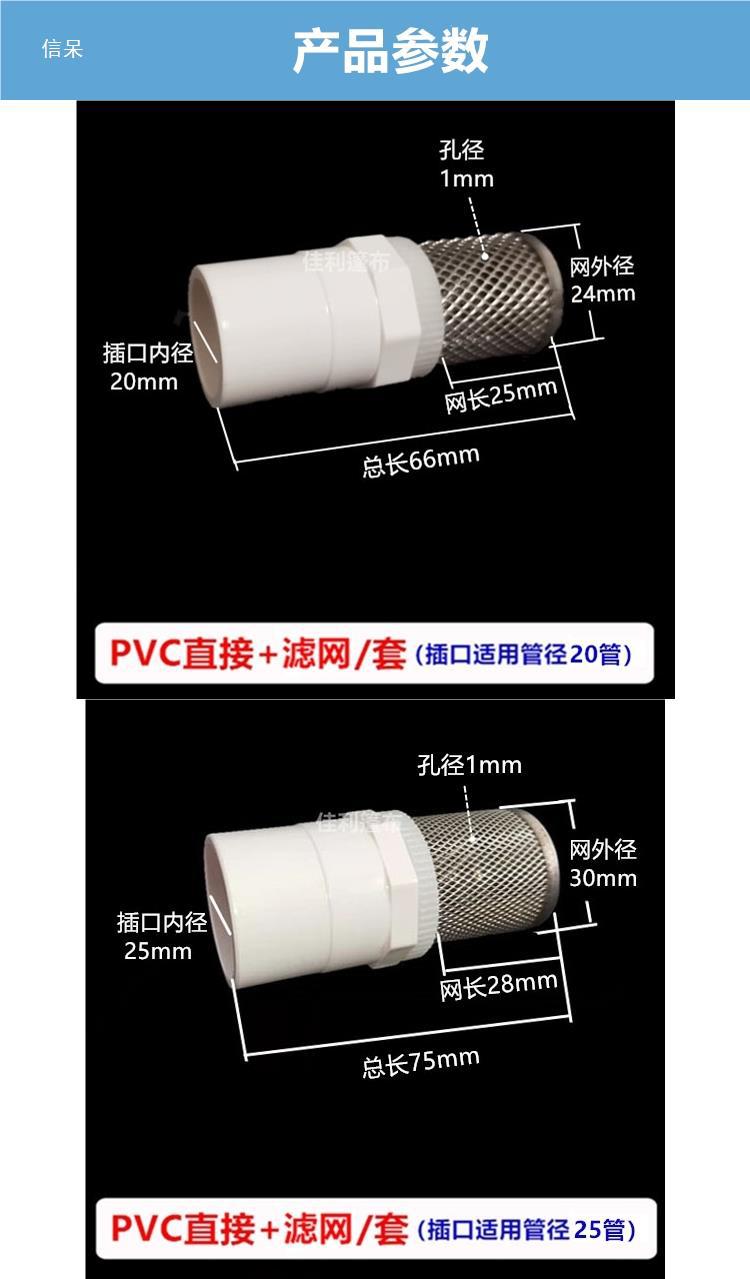 • 1.2 인치 PVC 직접 (pvc40 파이프에 연결) 필터 화면