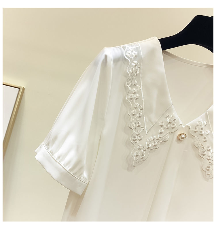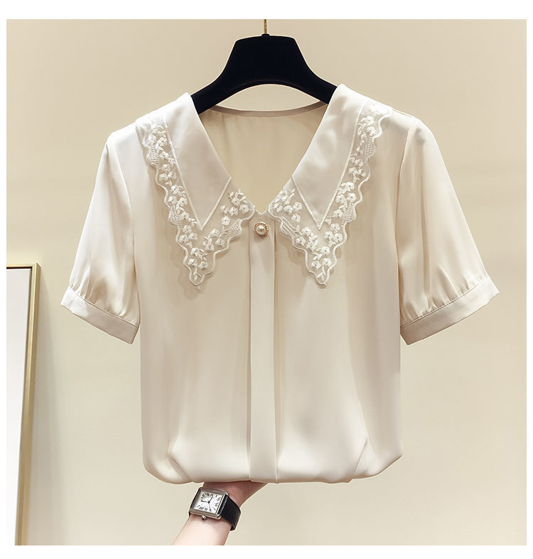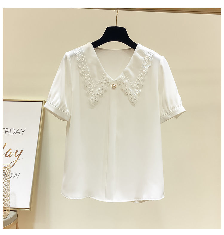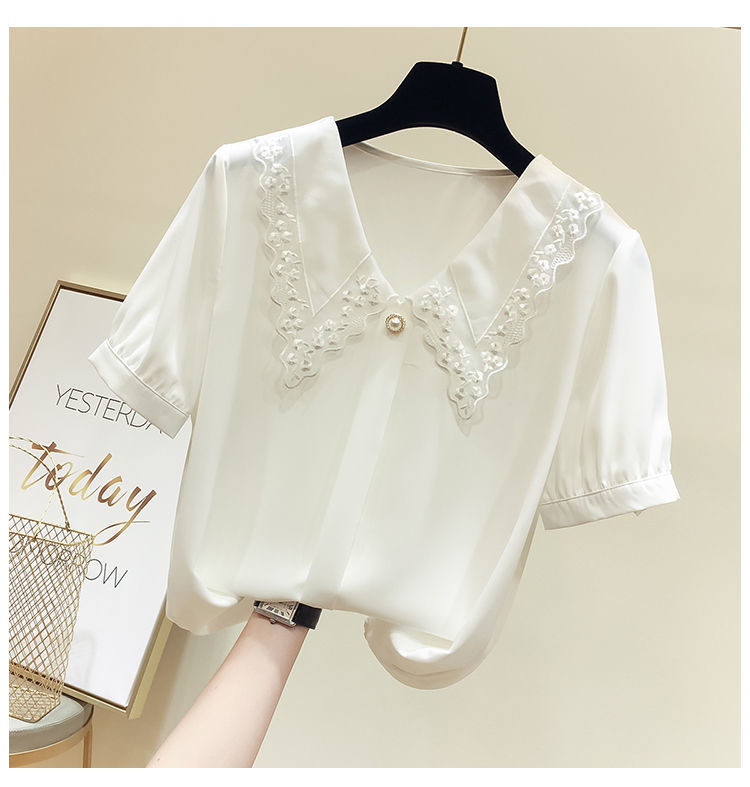 시폰 셔츠 여성용 반팔 2024 여름 새 한국식 하이 엔드 루즈 슬리밍 인형 칼라 스위트 스타일리시 리틀 쿠이 웨이스토어 가기