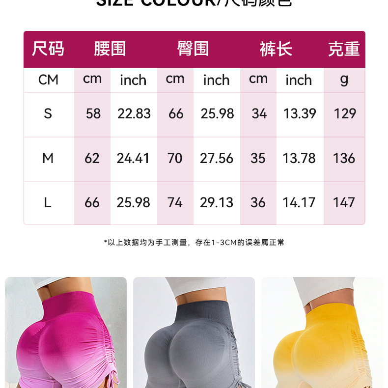 요가 그라데이션 반바지 복숭아 엉덩이 리프팅 하이 웨이스트 심리스 어색한 끈이 없는 스포츠 타이트 피트니스 여성용 3부 바지스토어 가기