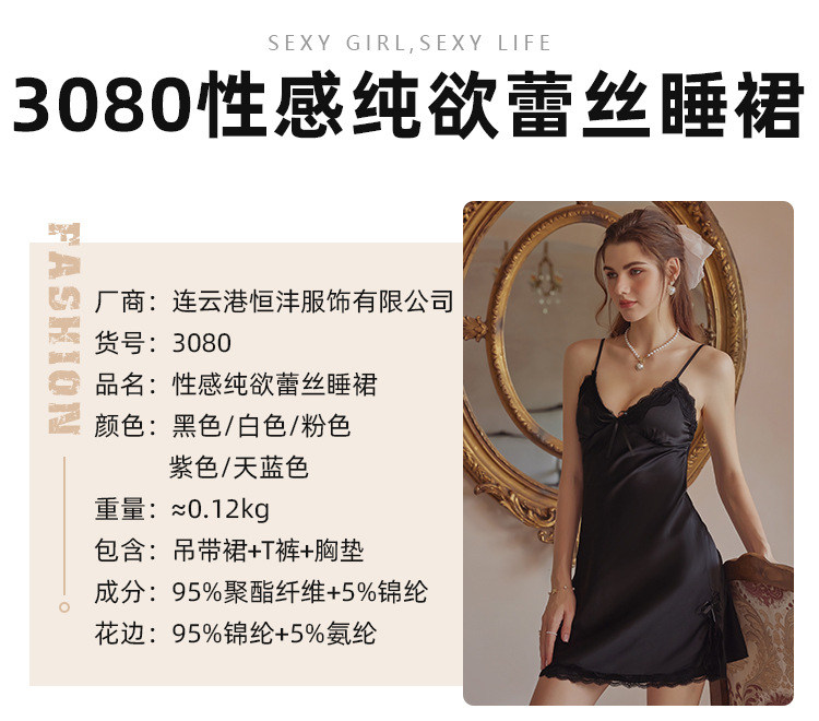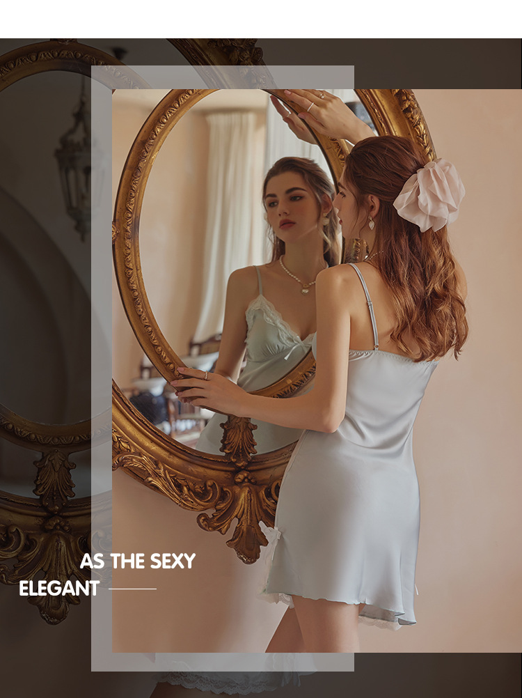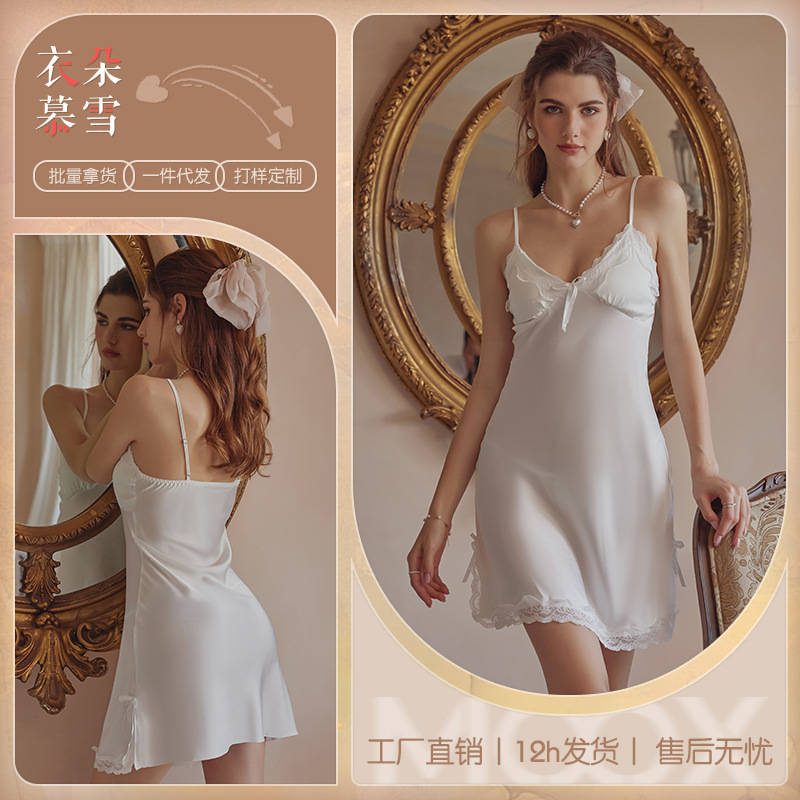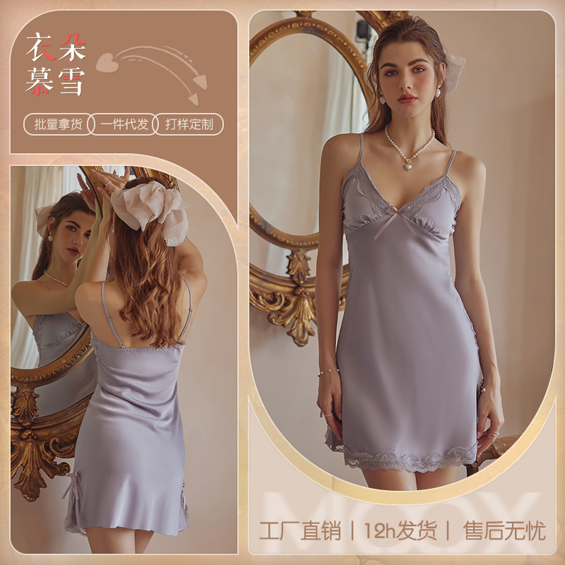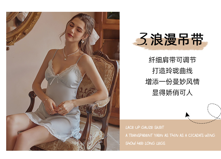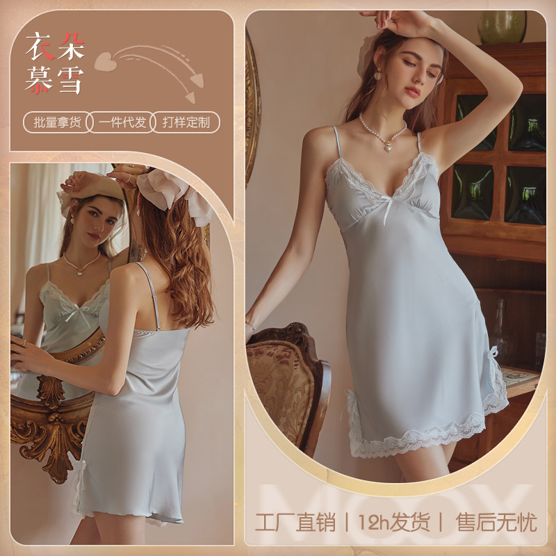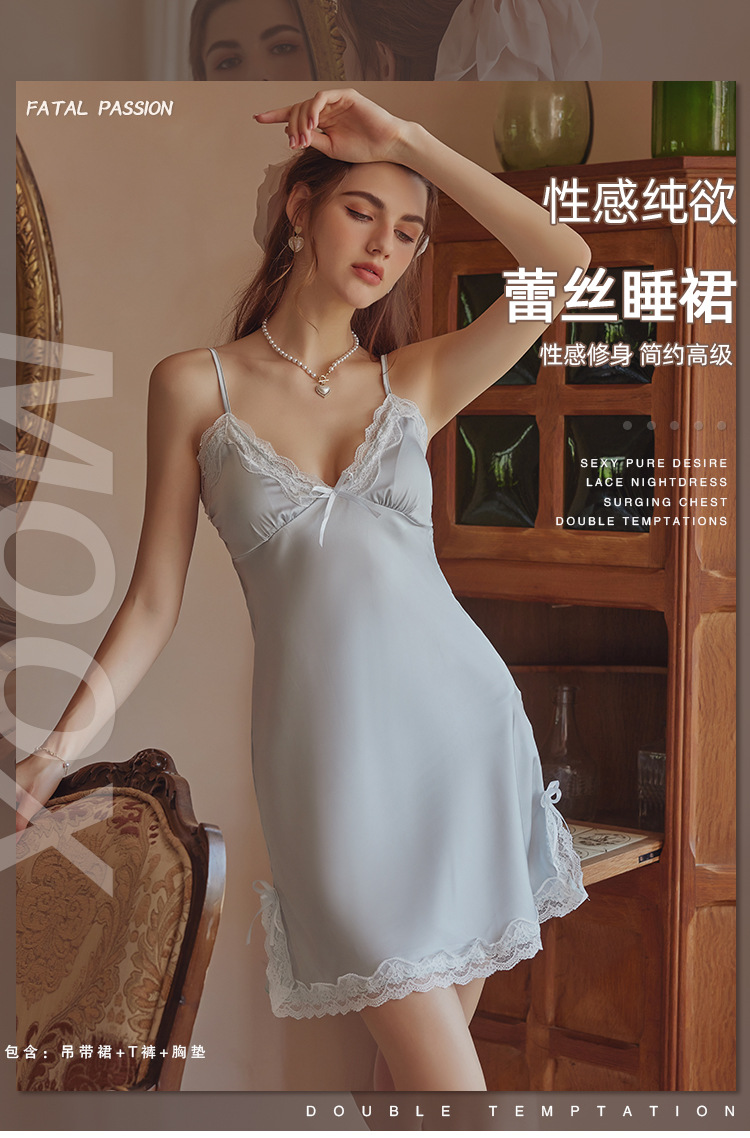 3080 Guanyun 섹시한 잠옷 가슴 패드 여성 여름 프랑스어 빛 럭셔리 홈웨어 얼음 실크 잠옷 순수한 욕망 레이스 슬링스토어 가기