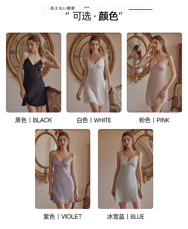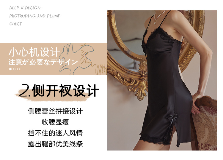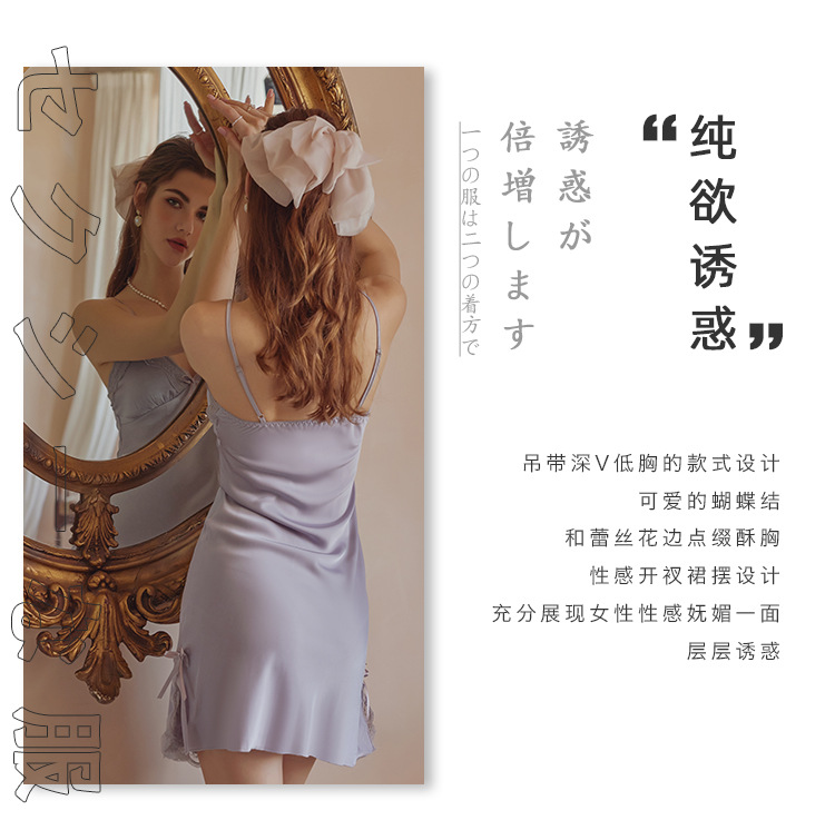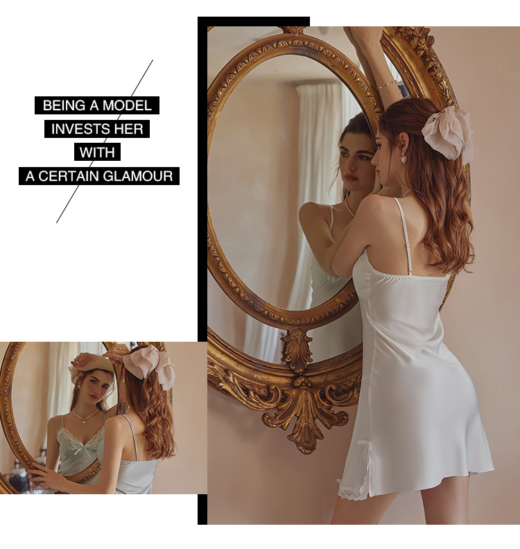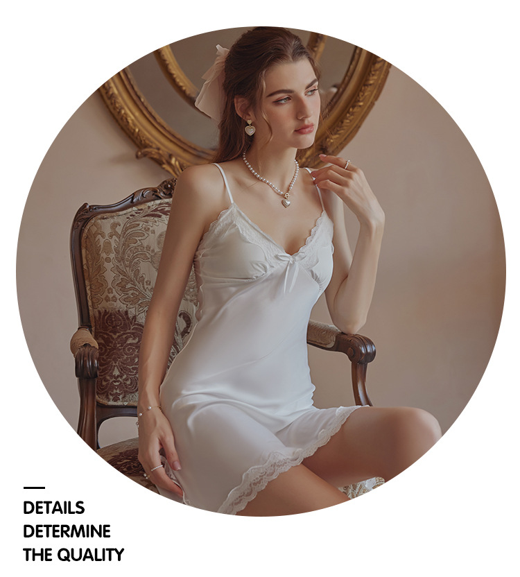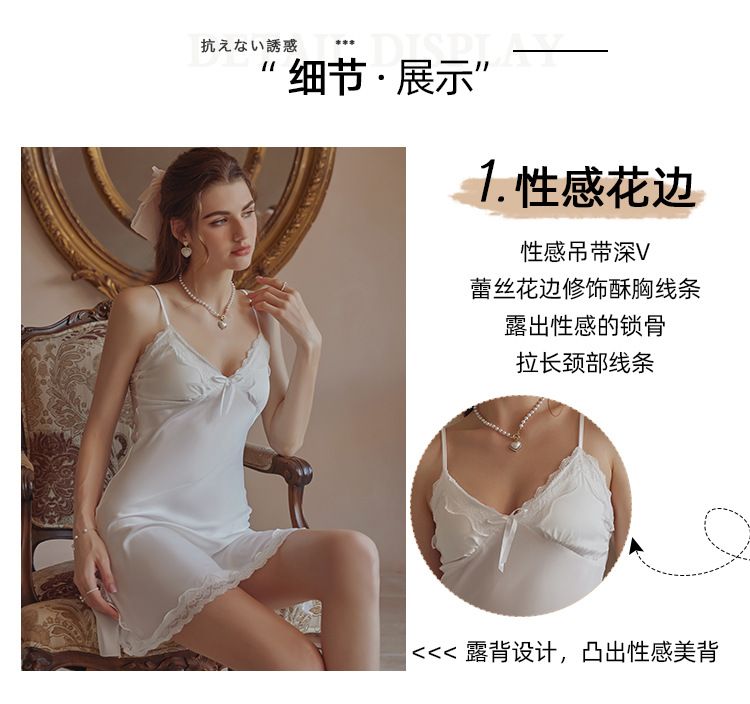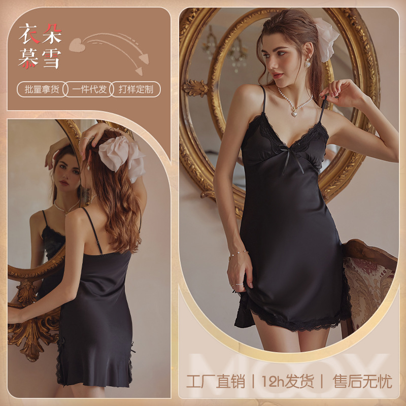 3080 Guanyun 섹시한 잠옷 가슴 패드 여성 여름 프랑스어 빛 럭셔리 홈웨어 얼음 실크 잠옷 순수한 욕망 레이스 슬링스토어 가기