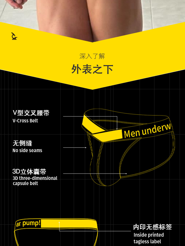 높은 분할 통기성 볼록 가방 얇은 남성 브리프 면 섬유 반투명 단일 레이어 섹시한 편안한 레깅스스토어 가기