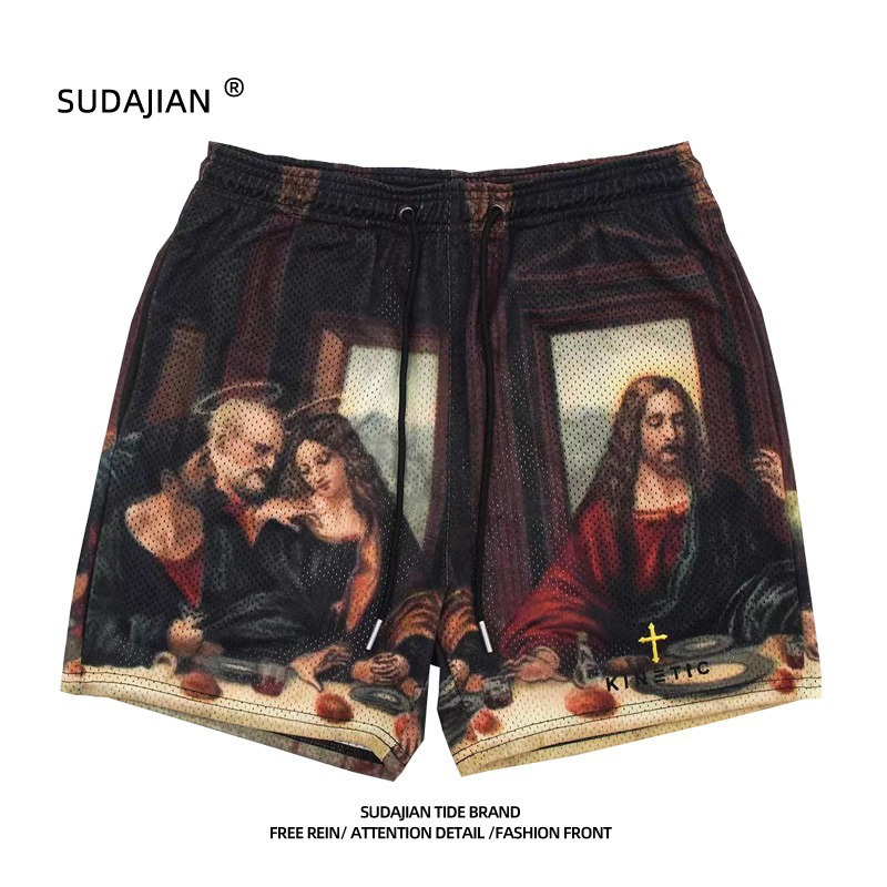 여름 미국 농구 무릎 반바지 남자 캐주얼 트리플 쿼드 바지 느슨한 스포츠 통기성 빠른 건조 훈련 바지 트렌디스토어 가기
