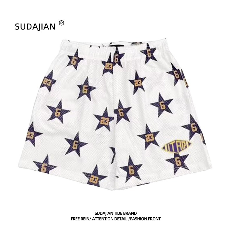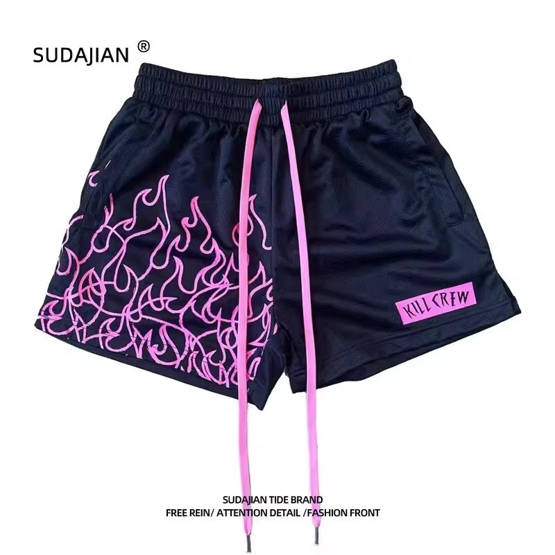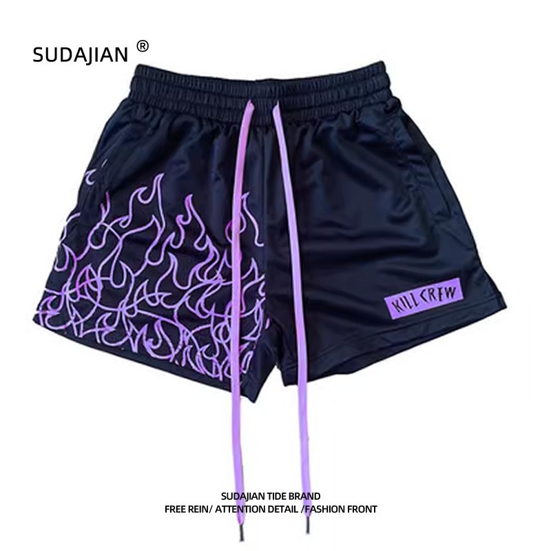 여름 미국 농구 무릎 반바지 남자 캐주얼 트리플 쿼드 바지 느슨한 스포츠 통기성 빠른 건조 훈련 바지 트렌디