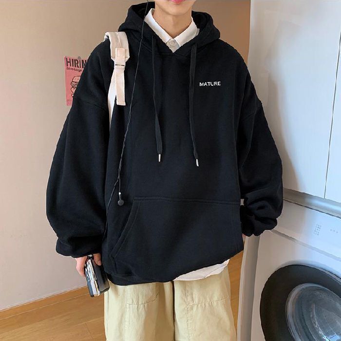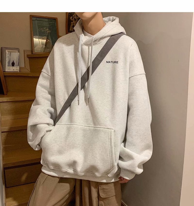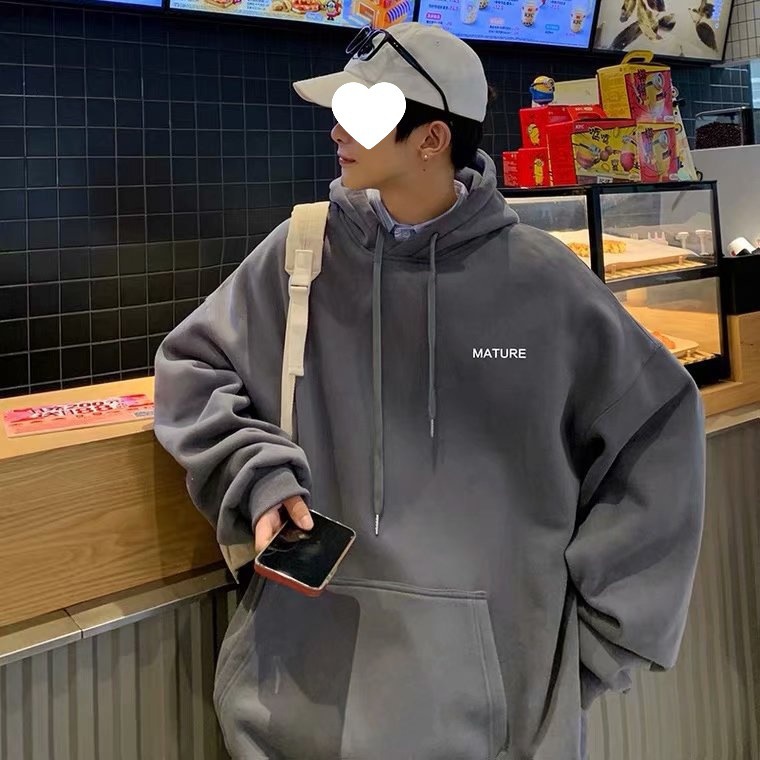 기모 두꺼운 후드 스웨트 트렌디 남성 홍콩 스타일 느슨한 핸섬 가을과 겨울 기모 올 매치 캐주얼 심플 학생 탑스토어 가기