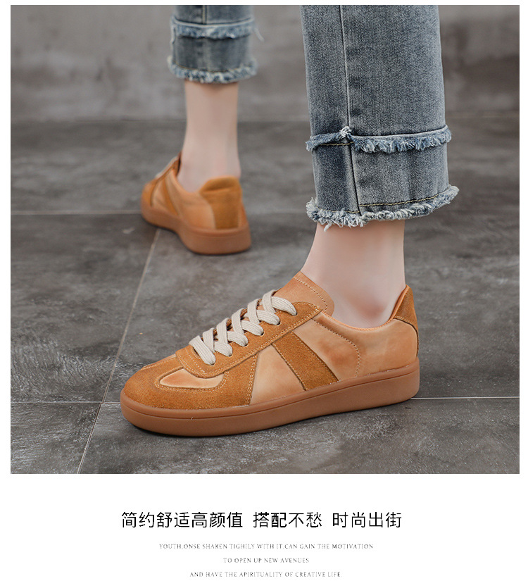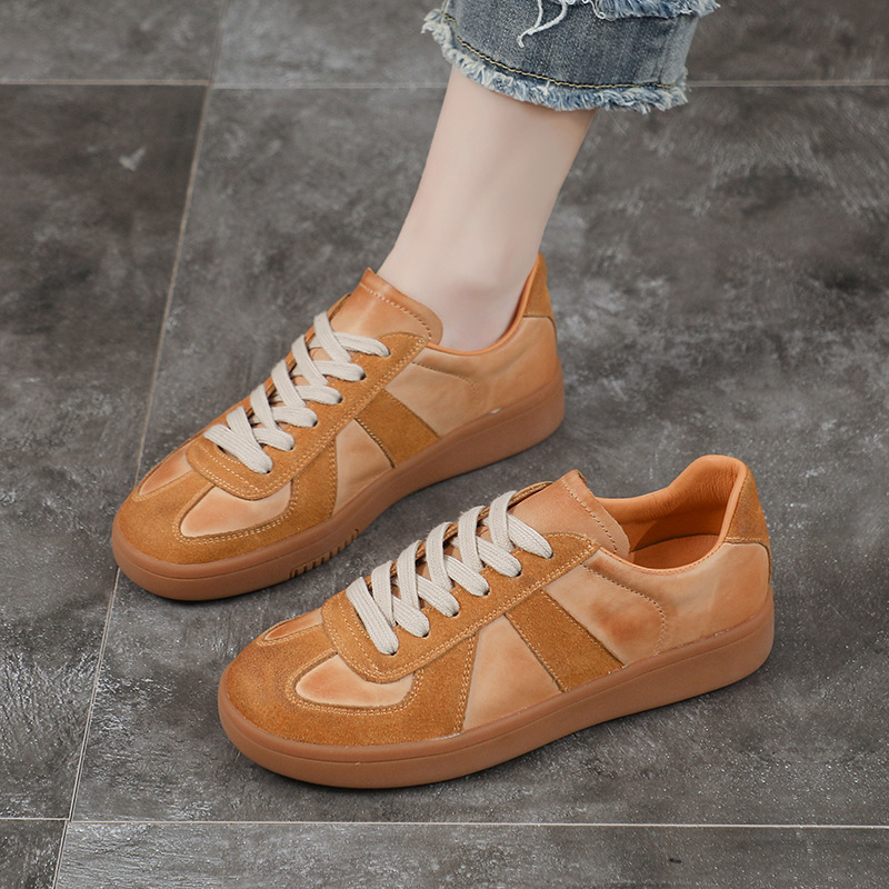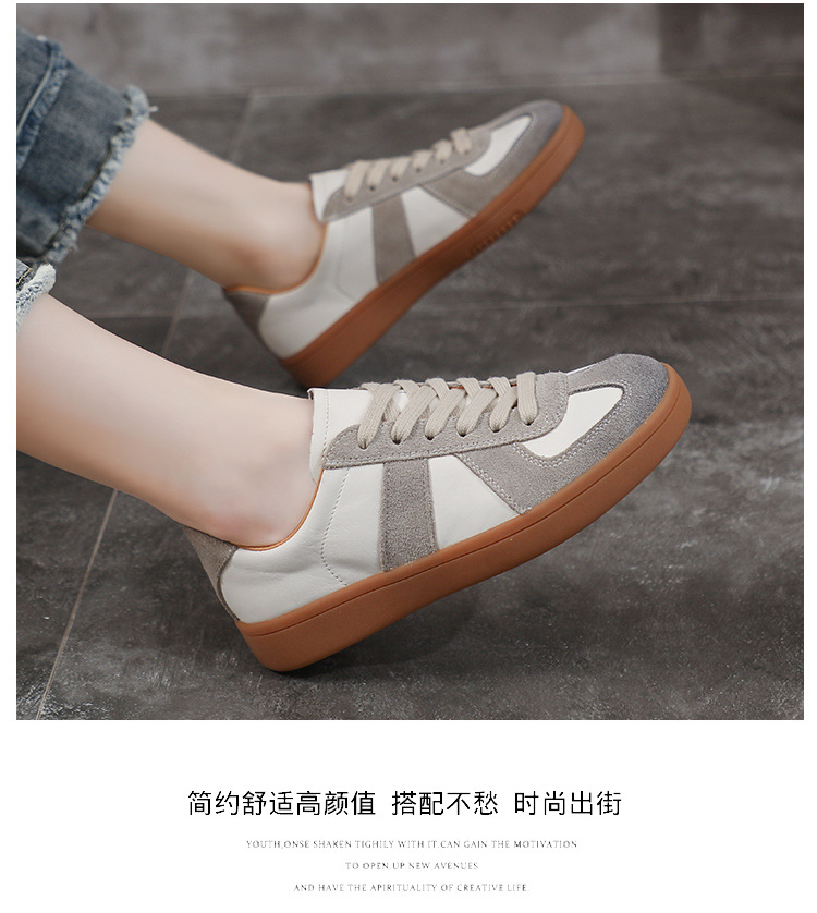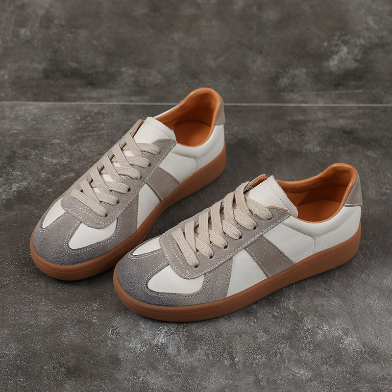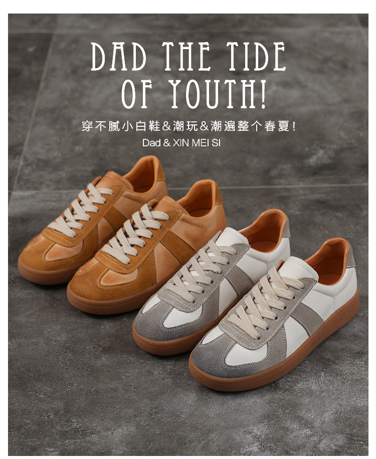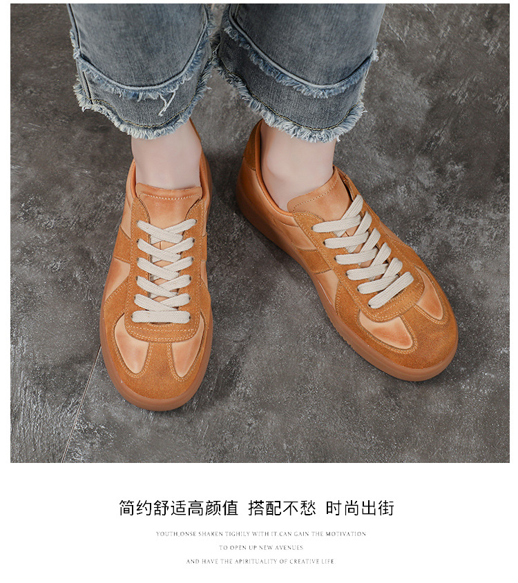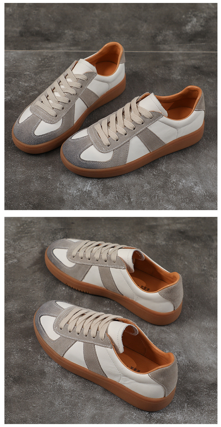 [내외부 모두 소가죽] 레트로 데순 슈즈 여성 캐주얼 런닝 운동화, 다용도 플랫 화이트 슈즈 여성용스토어 가기